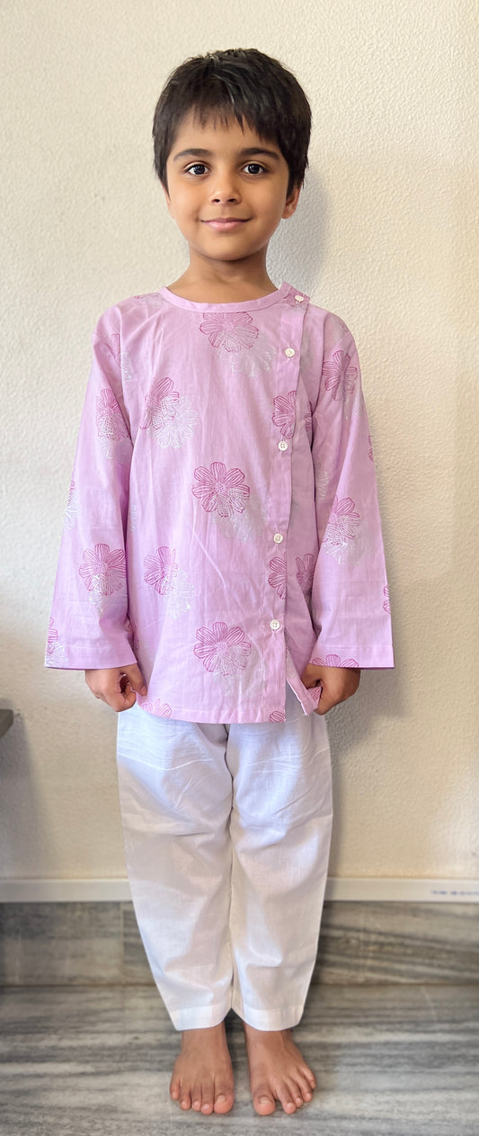 Lilac & Silver Flower Salwar Set Girls