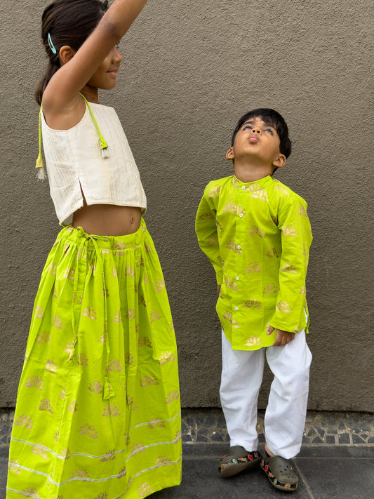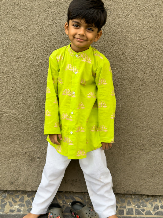 Neon Green Lotus Kurta Pajama Set