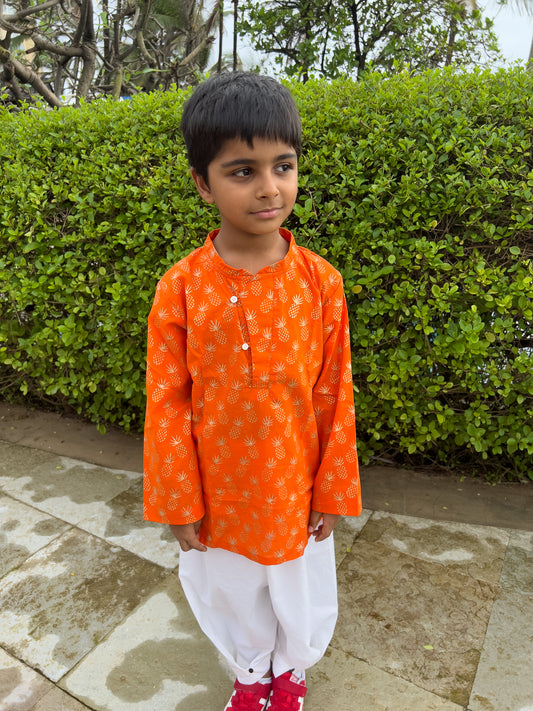 Orange & Gold Parrot Kurta Pajama set