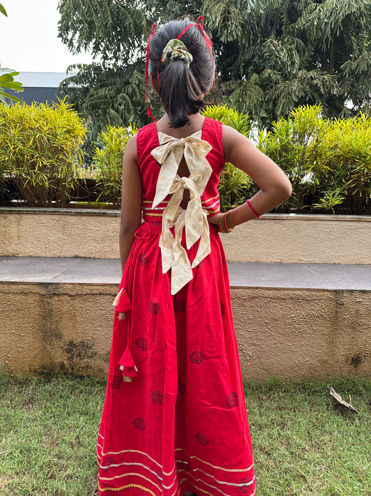Red with Blue Rose ghagra choli set