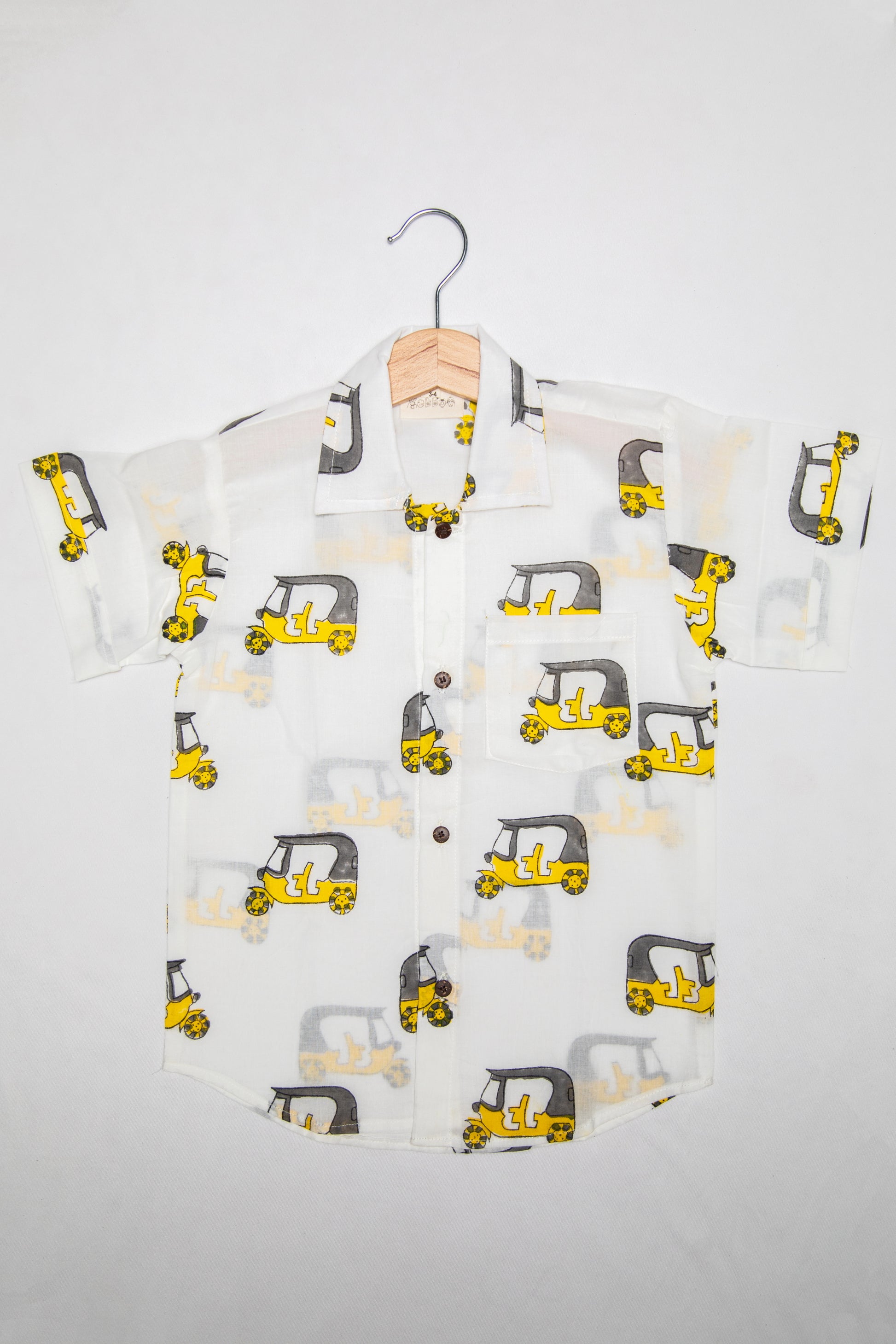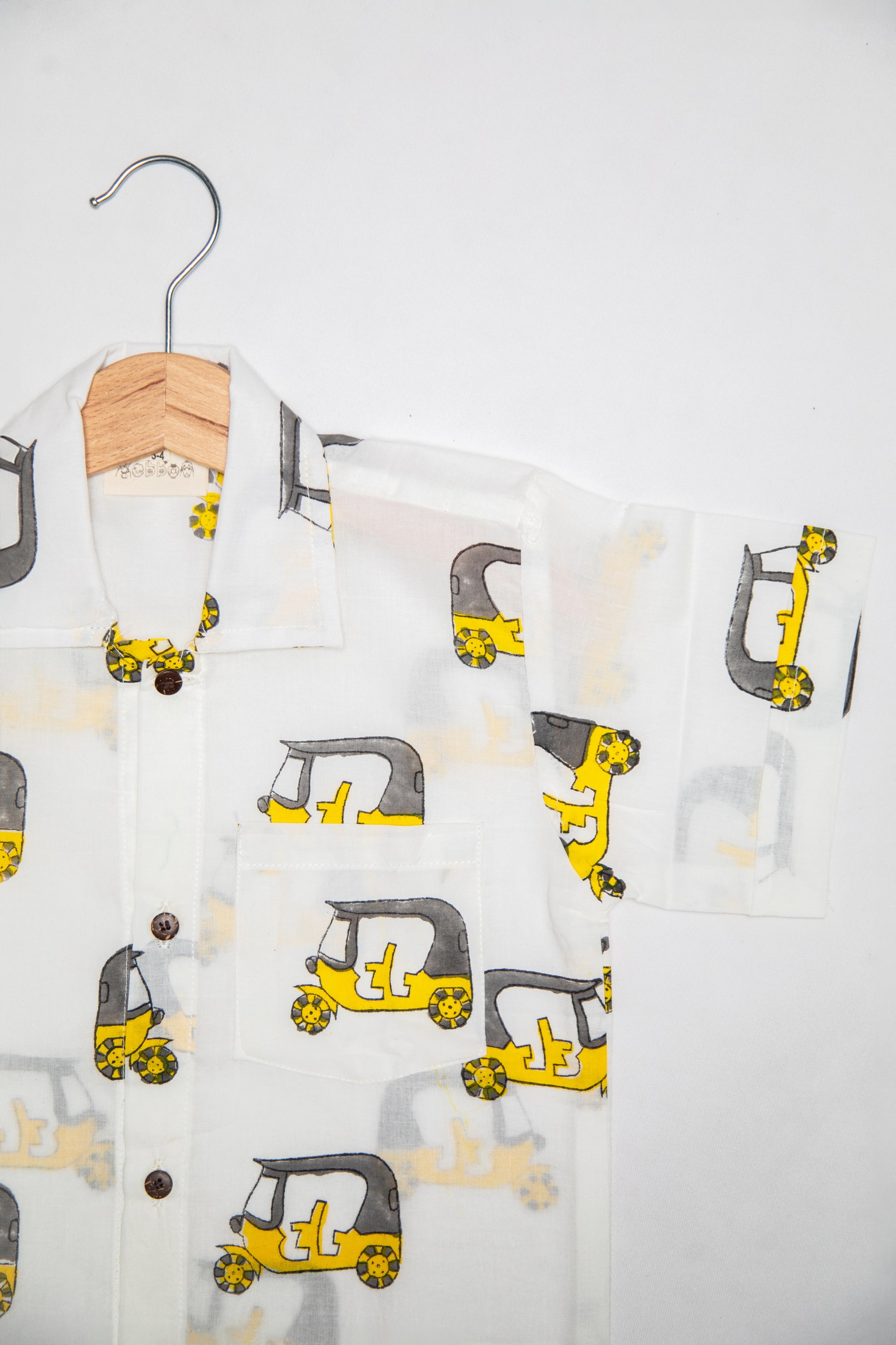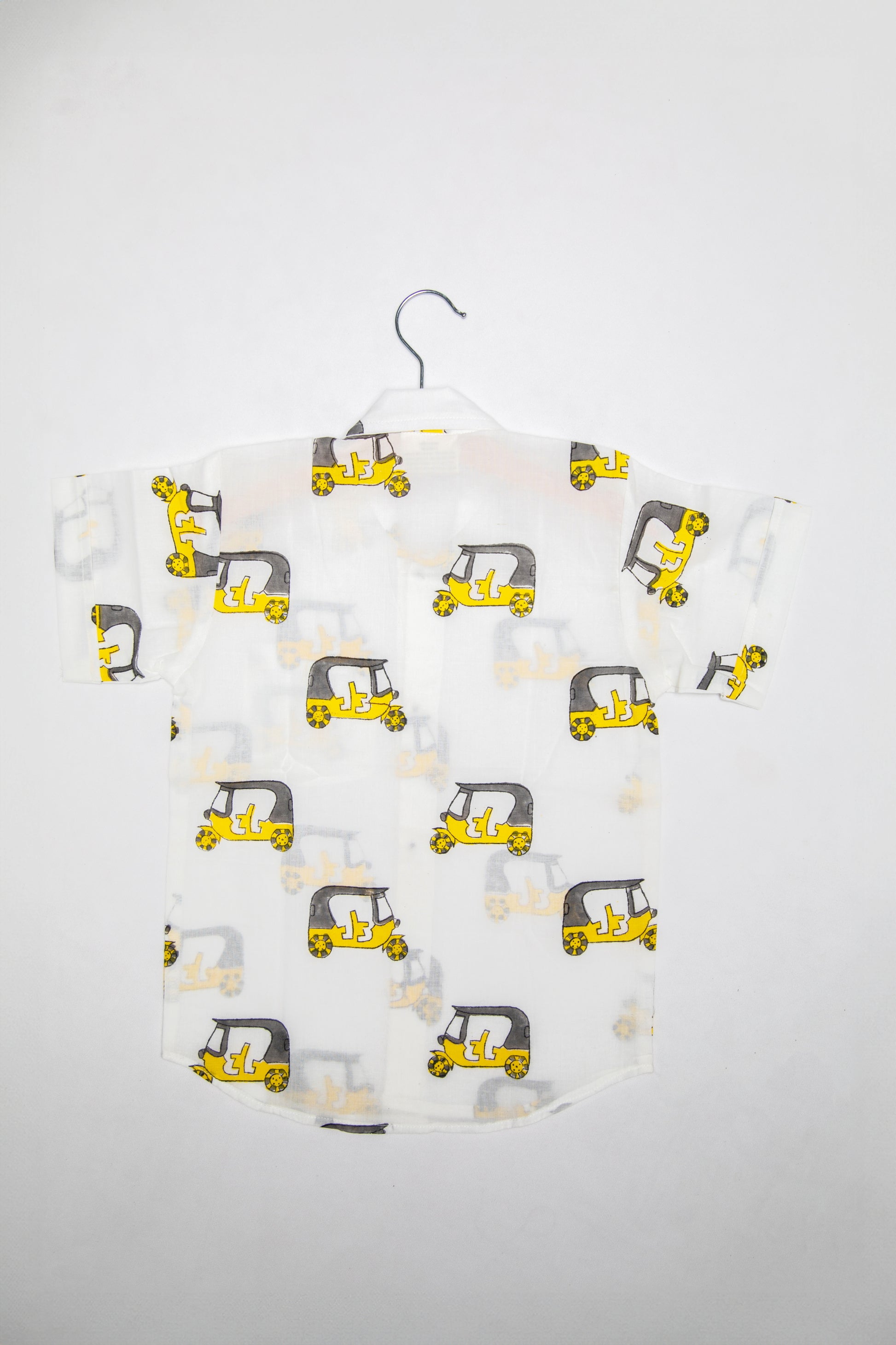 This effortless quirky print Auto-Rickshaw shirt is a must have ensemble for every lil explorer out there.