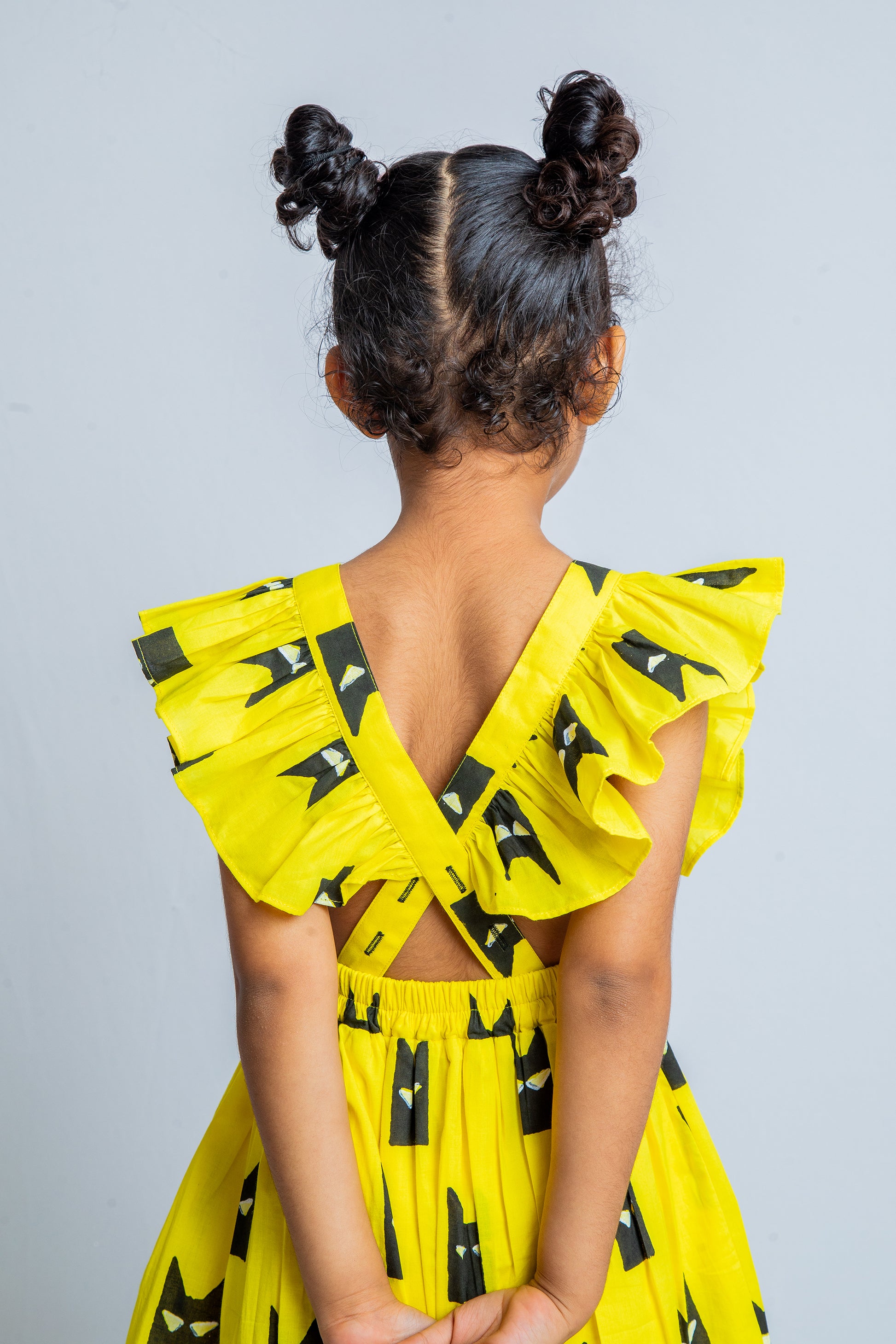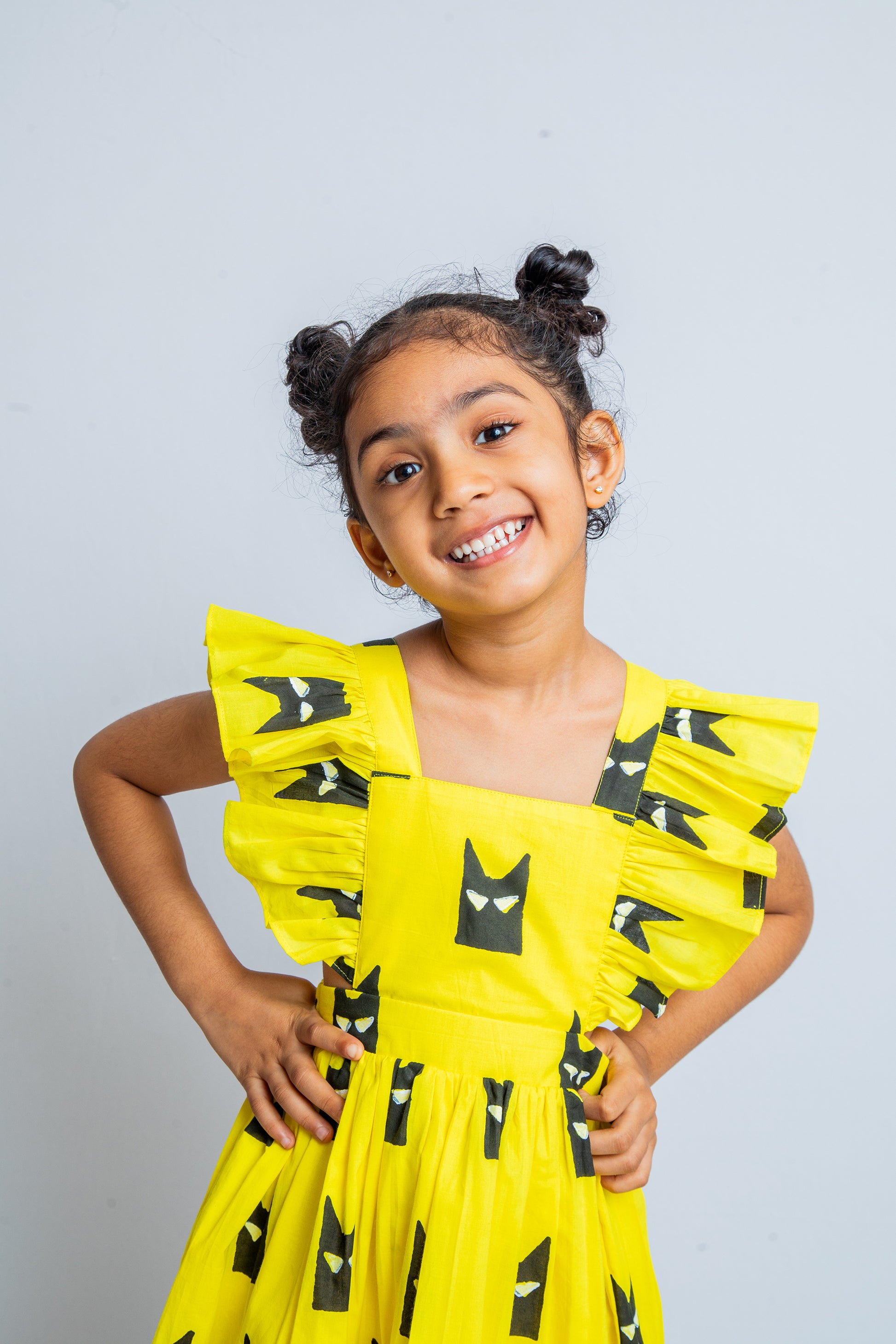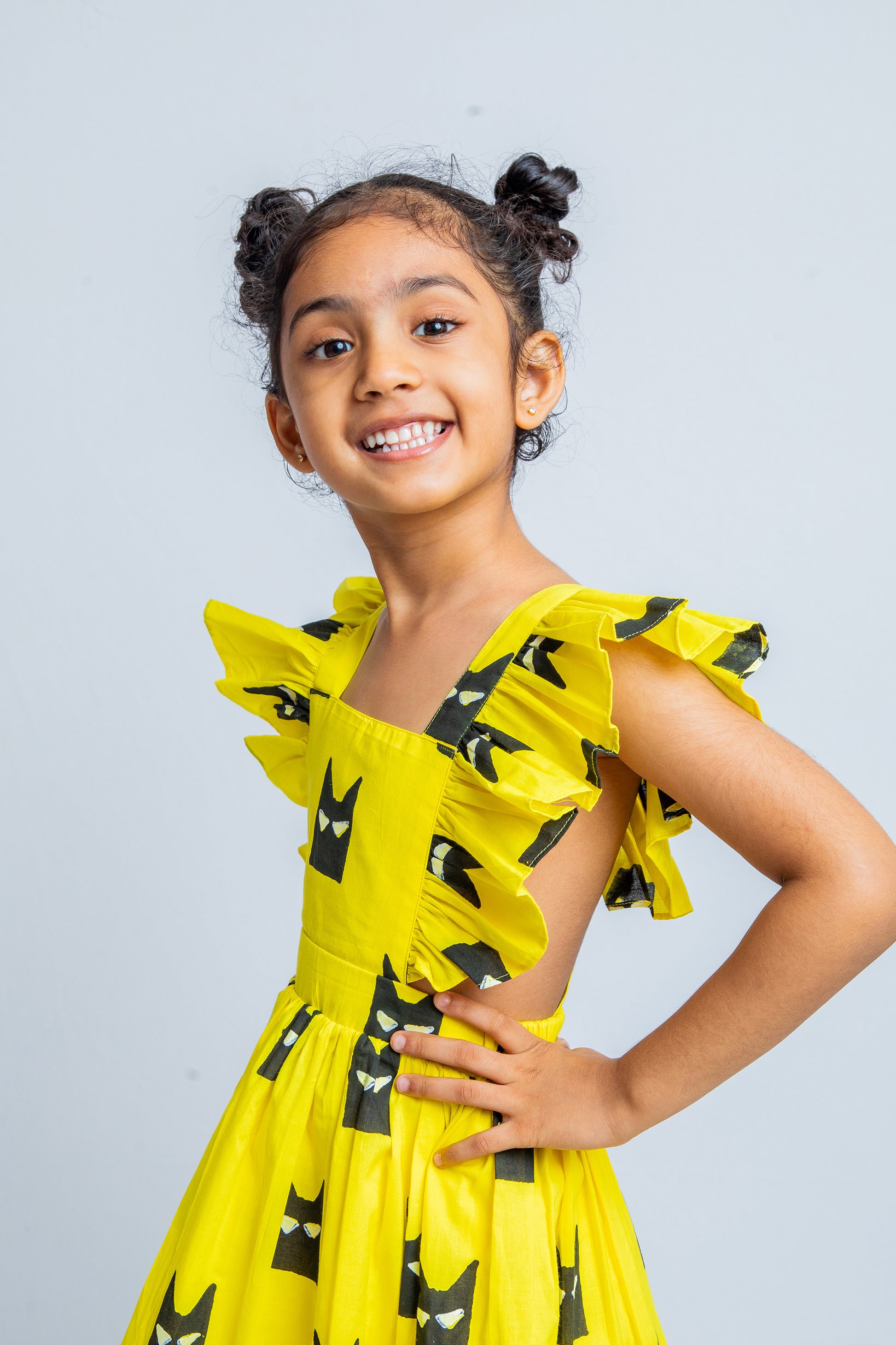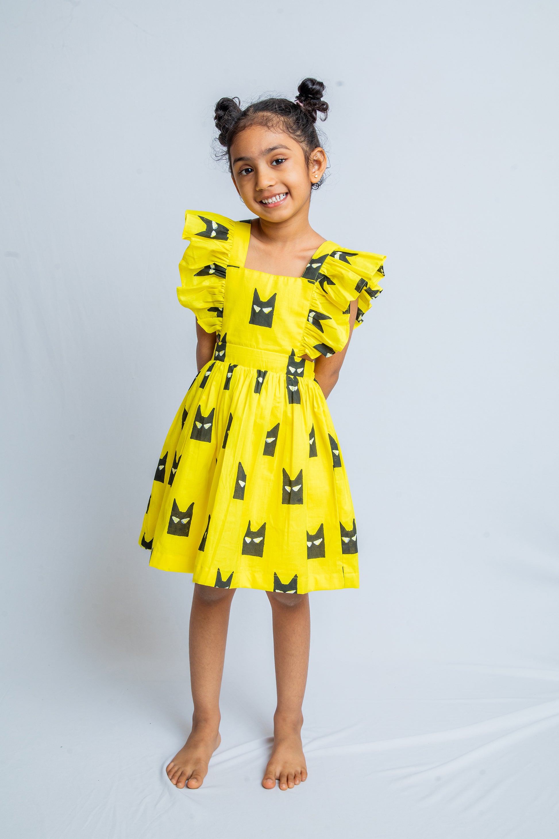 Flutter around in our most Favourite Batman print ruffle dress which is full of charm. It has a super cute frill detailing around the sleeves going upto the back of the dress.