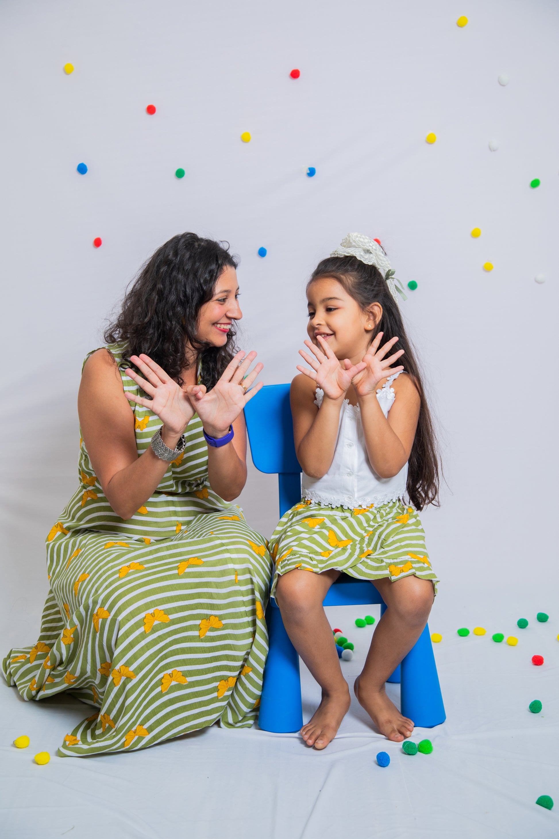 Introducing our Butterfly print skirt set from the Garden Whimsies Collection for girls: Crafted from 100% cotton, this set features green waves background with pretty yellow butterflies. Perfectly co-ordinated for effortless style, a must have ensemble for every child.