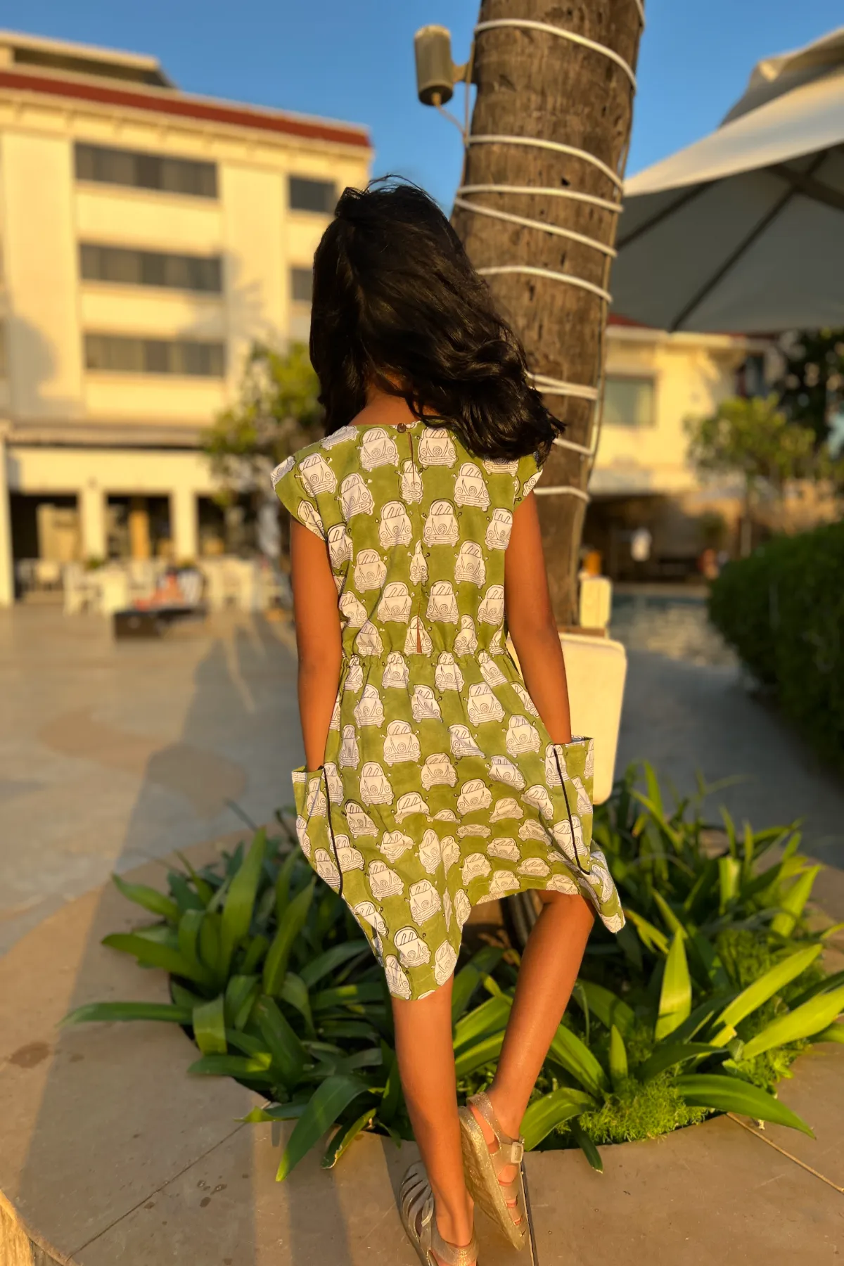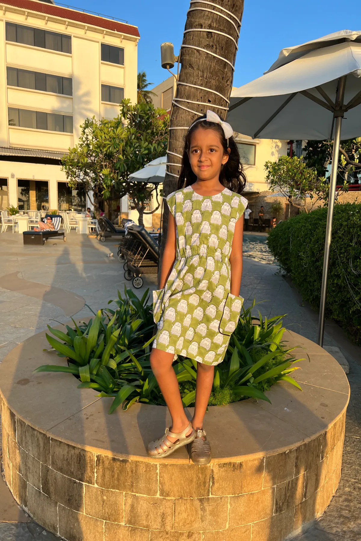 Girls Dress: Crafted from sustainable cotton and featuring a playful hand-block print design, its a comfortable straight fit with super cute pockets.