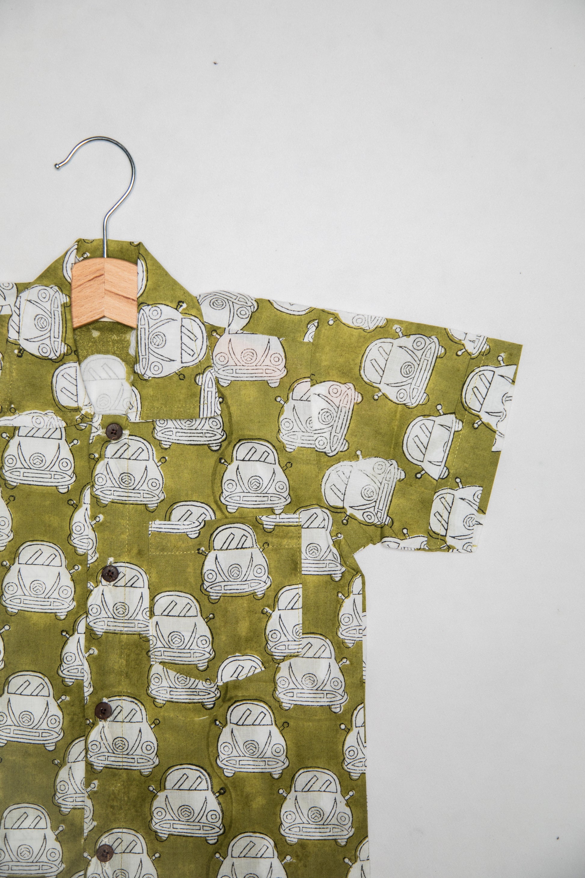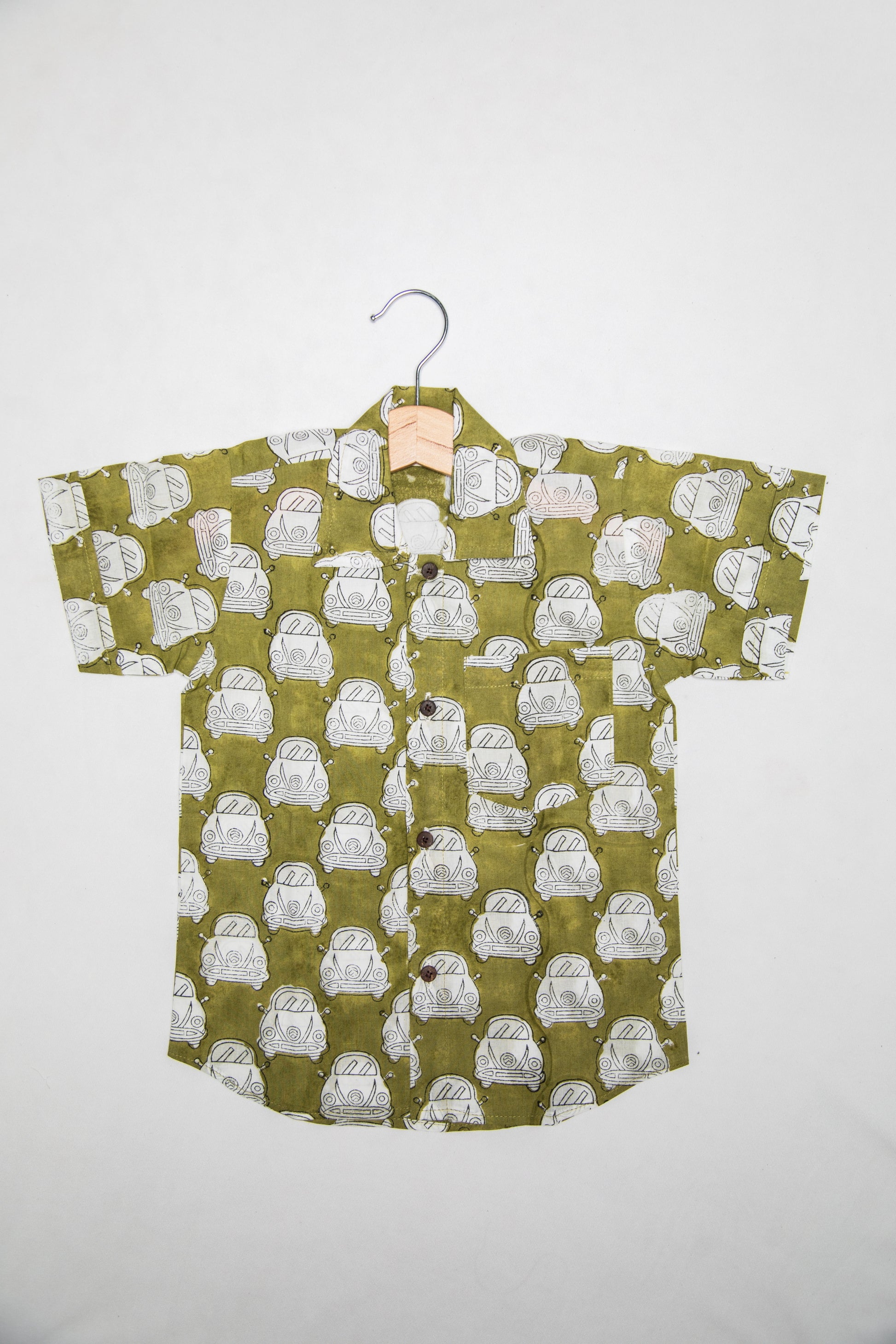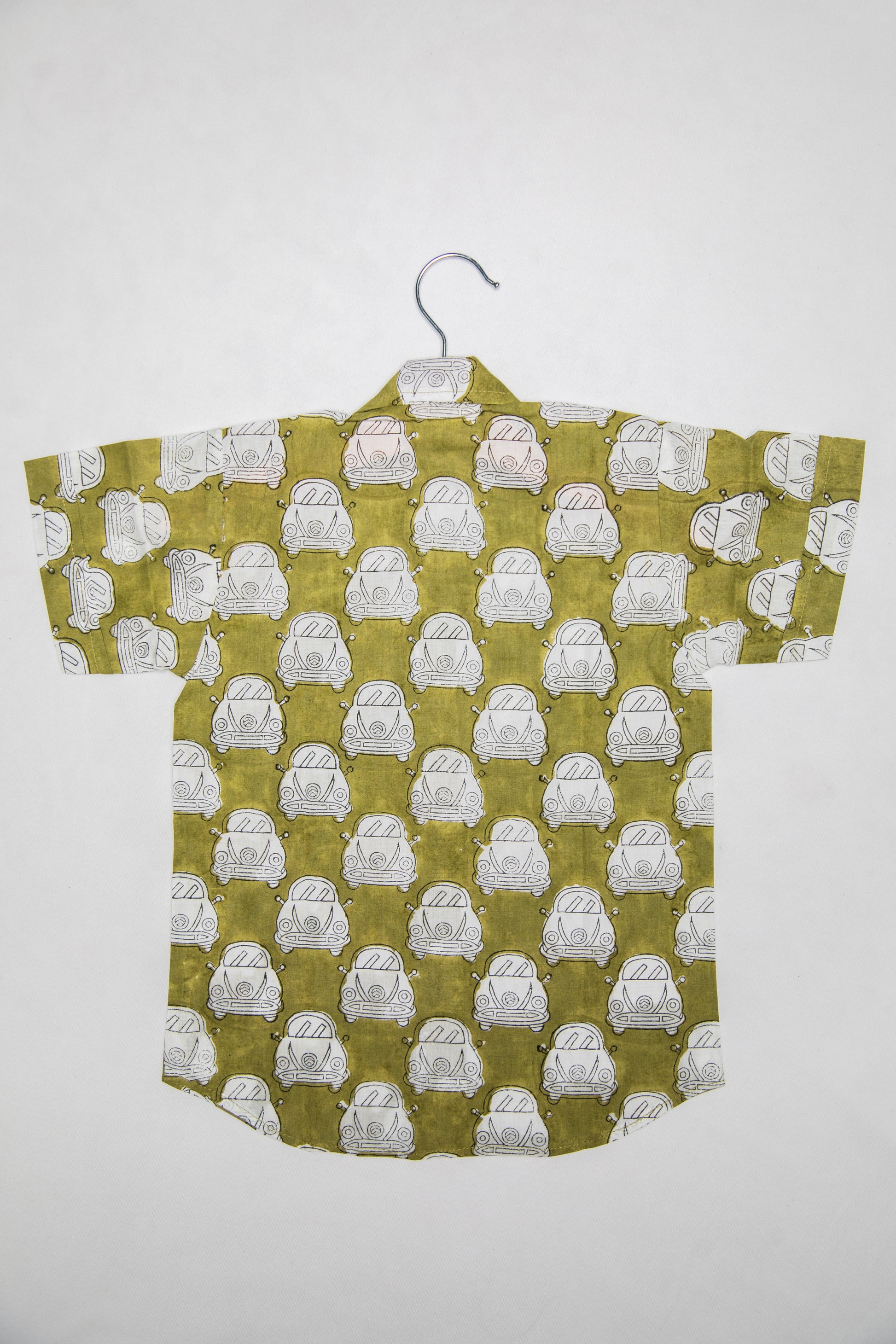 Vrooom Vrooom.... This olive green car print shirt is a must have ensemble for every lil explorer out there.