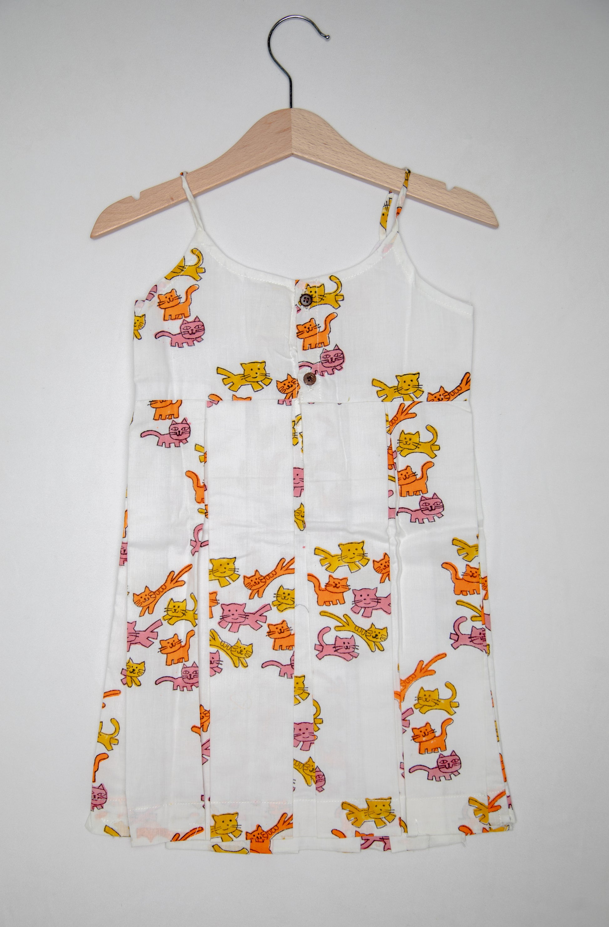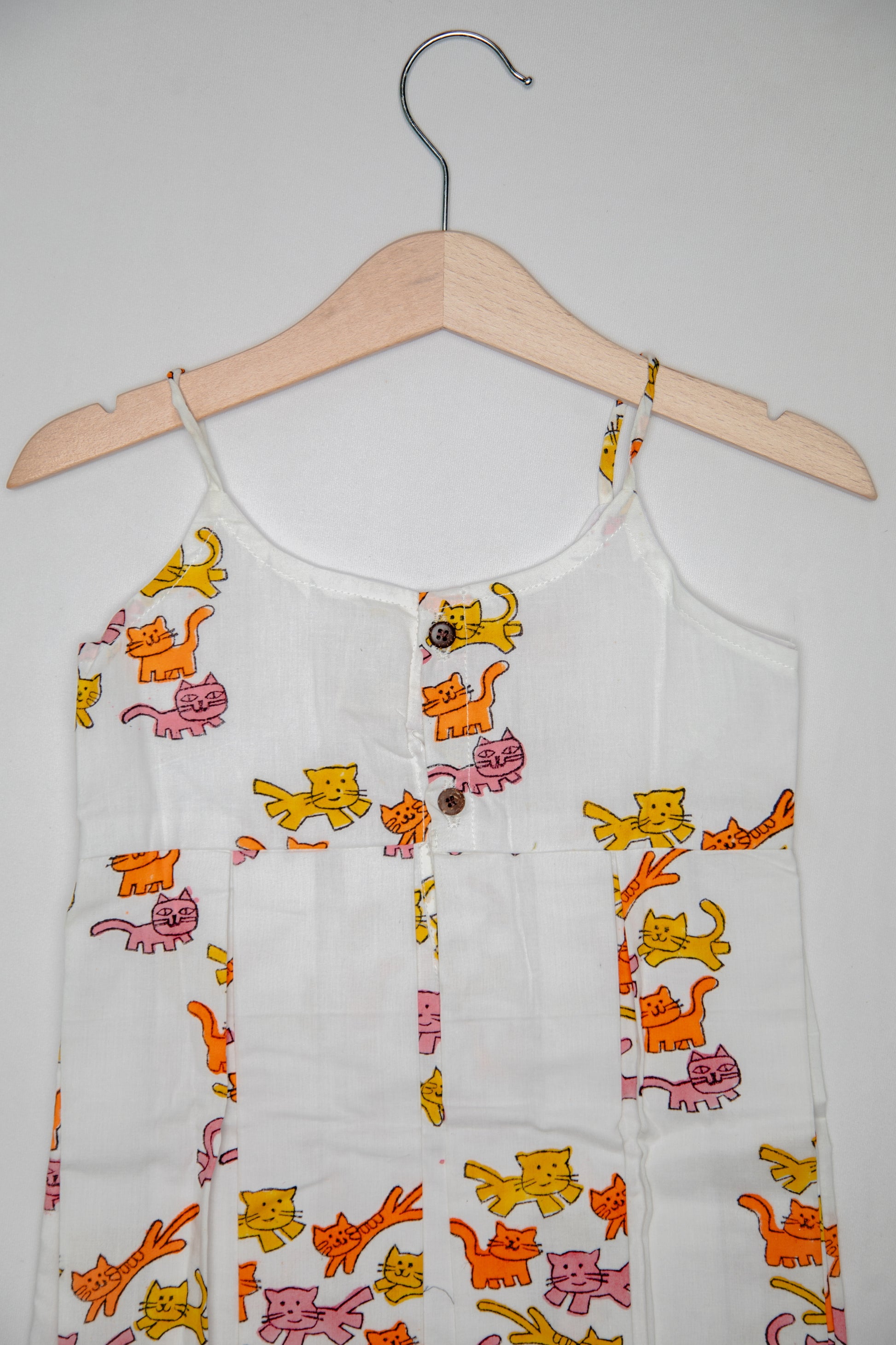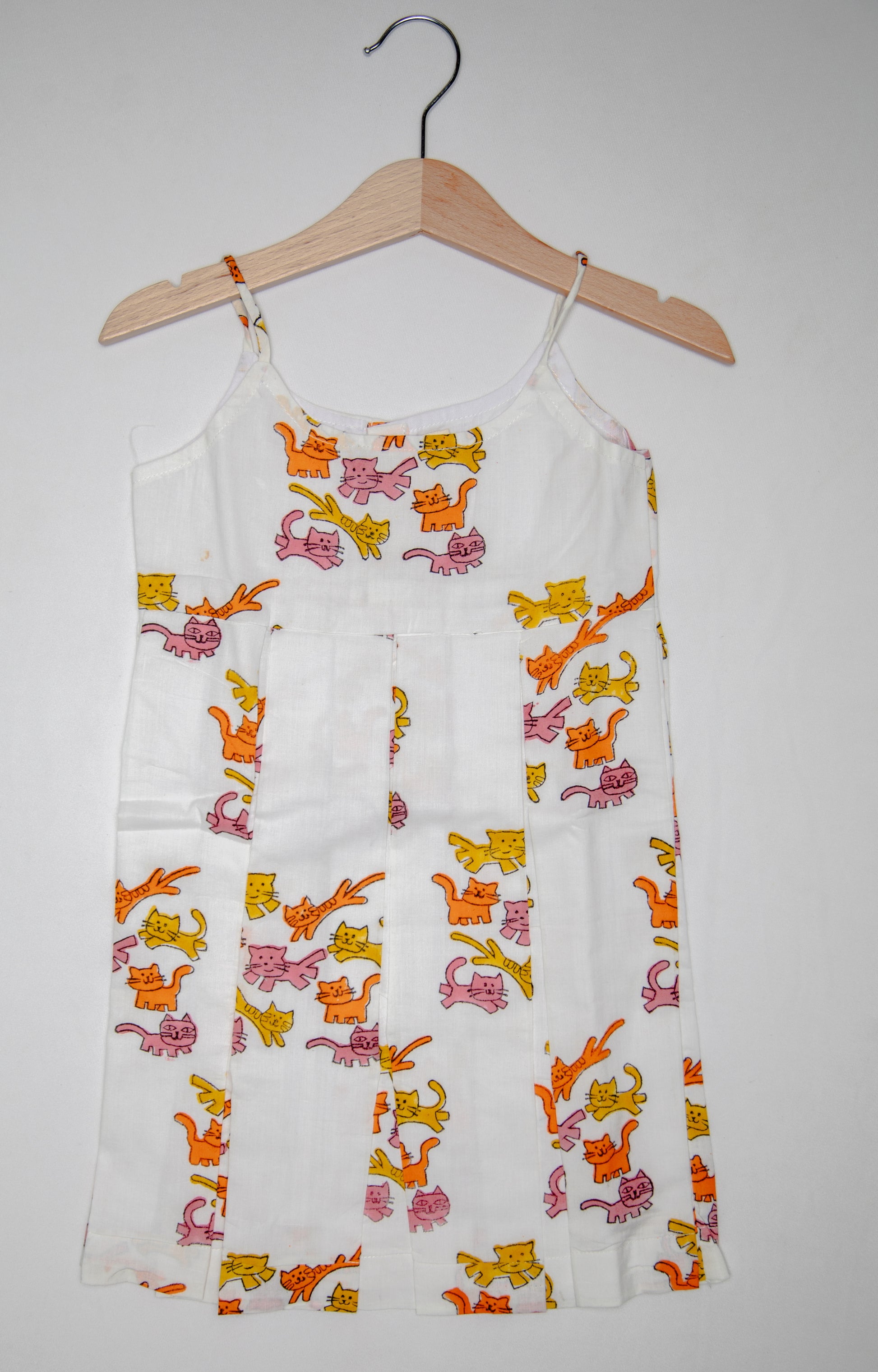 Our most loved, chic thick Box pleat dress featuring adorable Cats, hand-block printed is perfect for little trendsetters who love to stand out. Crafted with care and love.