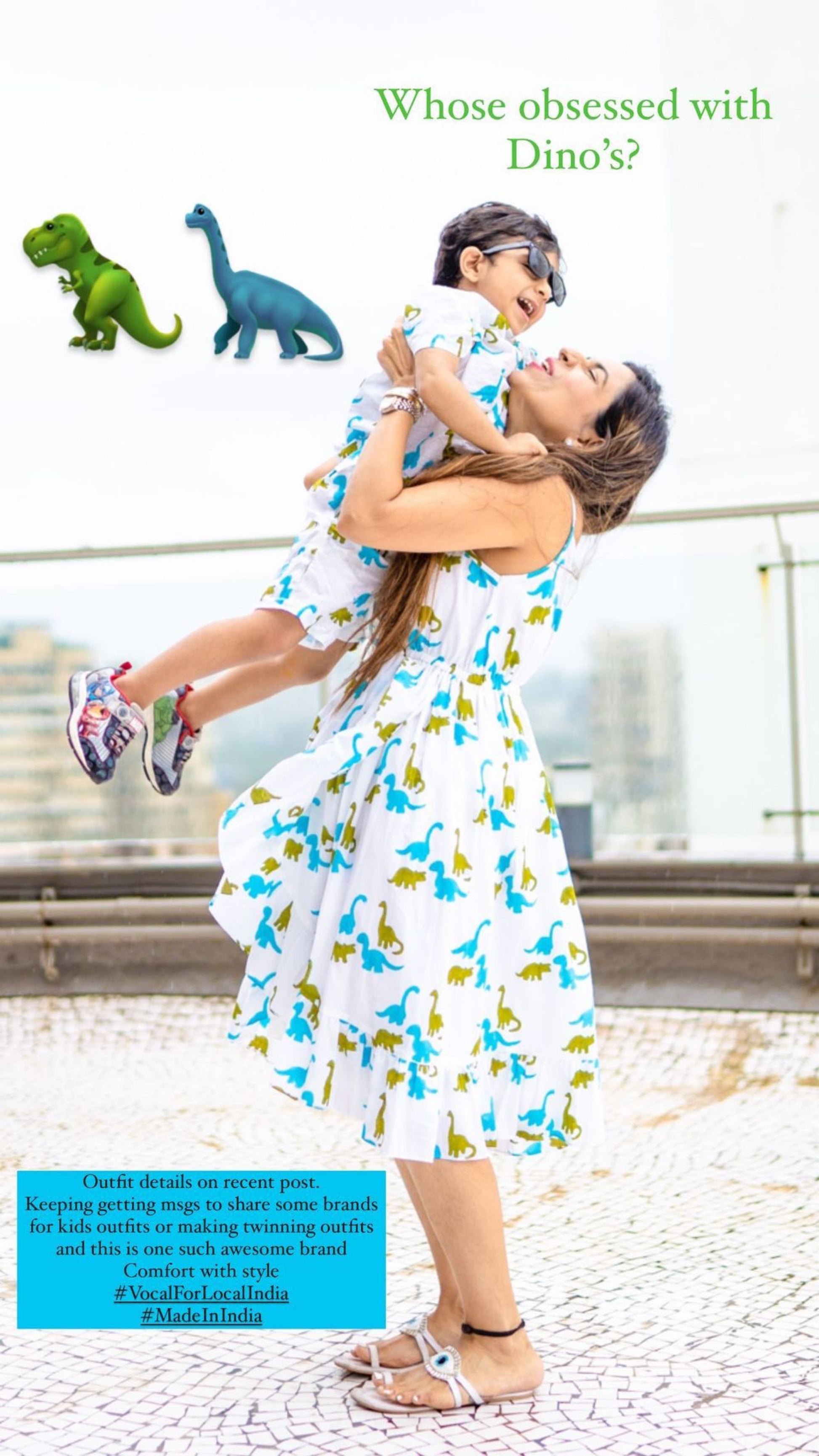 Adult Dress: Introducing our delightful Dino Print Adult Dress, featuring a quirky design on soft mul cotton fabric. This stylish set has a pretend overlap V neck on the top, with soft flowy ruffle frills running across till the bottom.