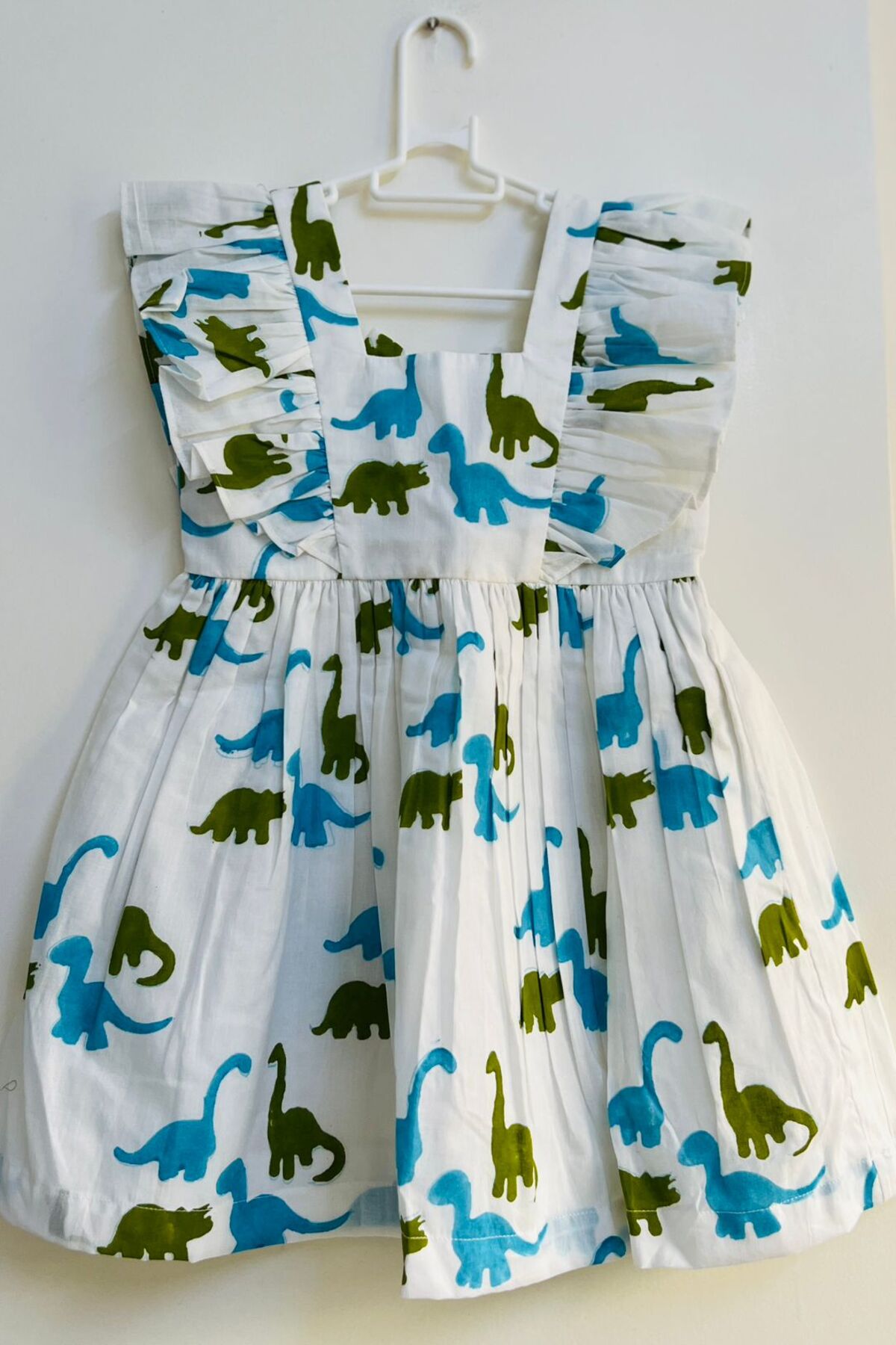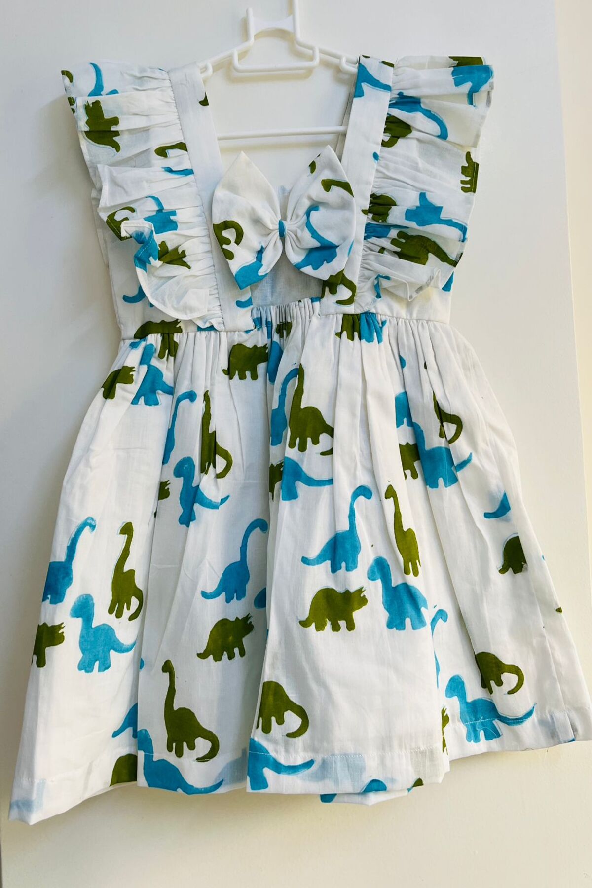Flutter around in our Dinosaur print Bow back Dress which is full of charm.