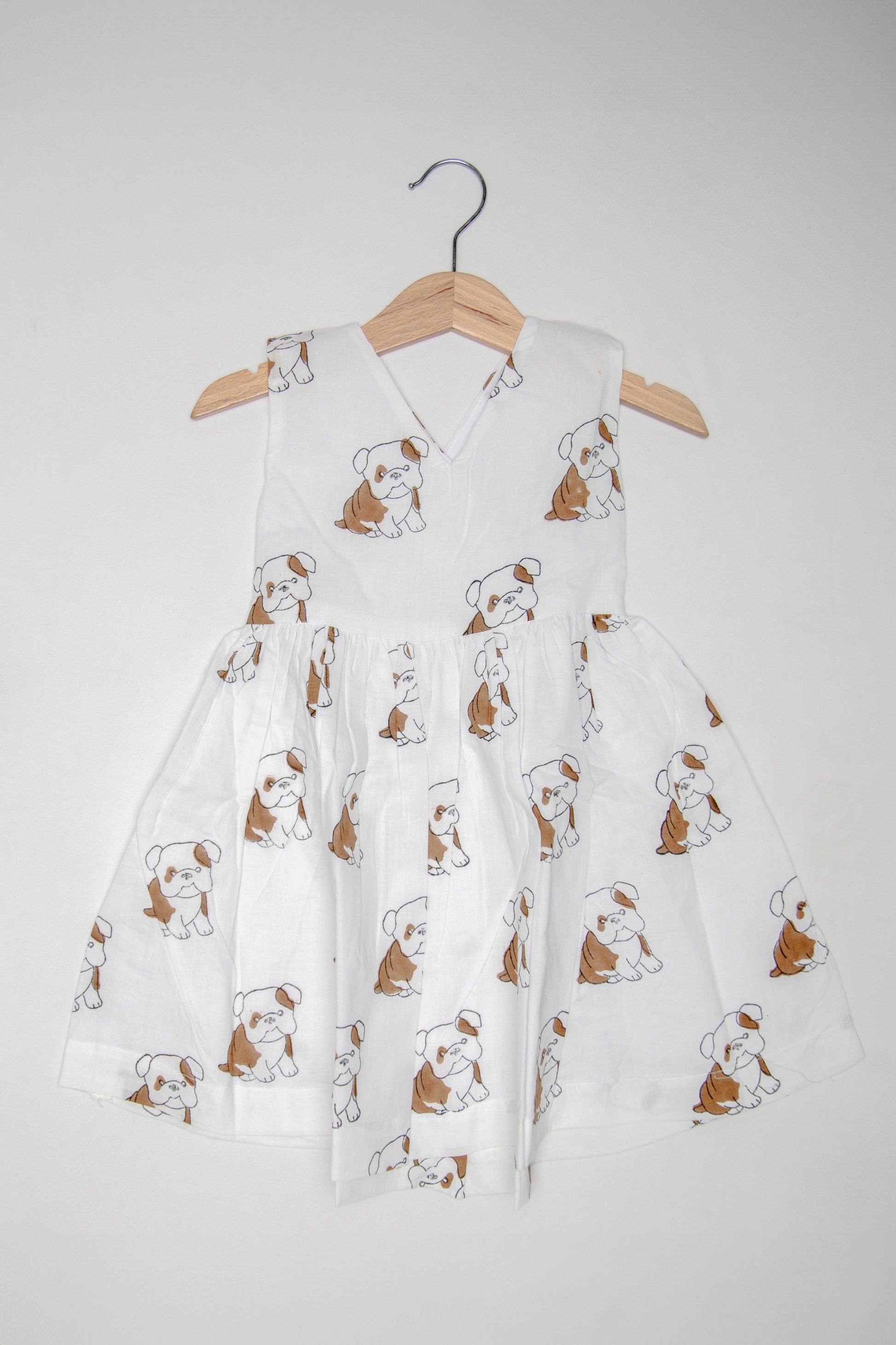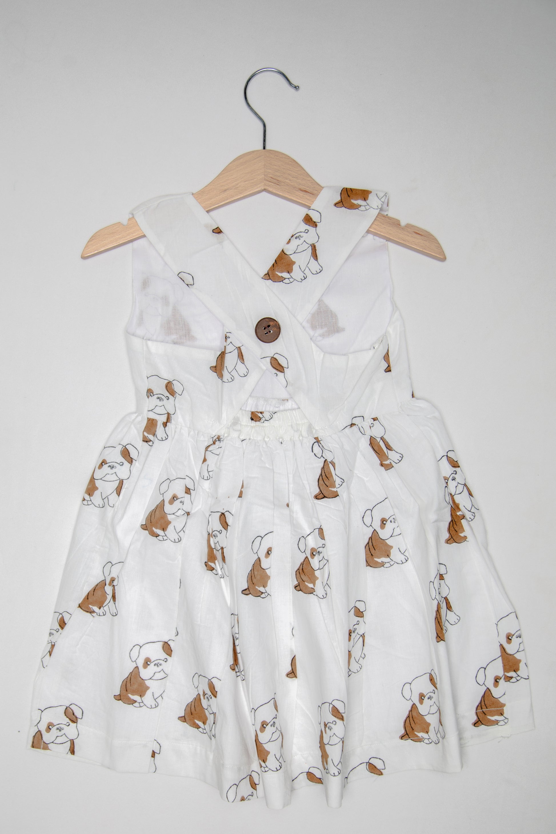 Our most loved, chic cross back dress with a tiny peep-hole below the button detailing, featuring our Dog print is perfect for little trendsetters who love to stand out. Crafted with care and love.