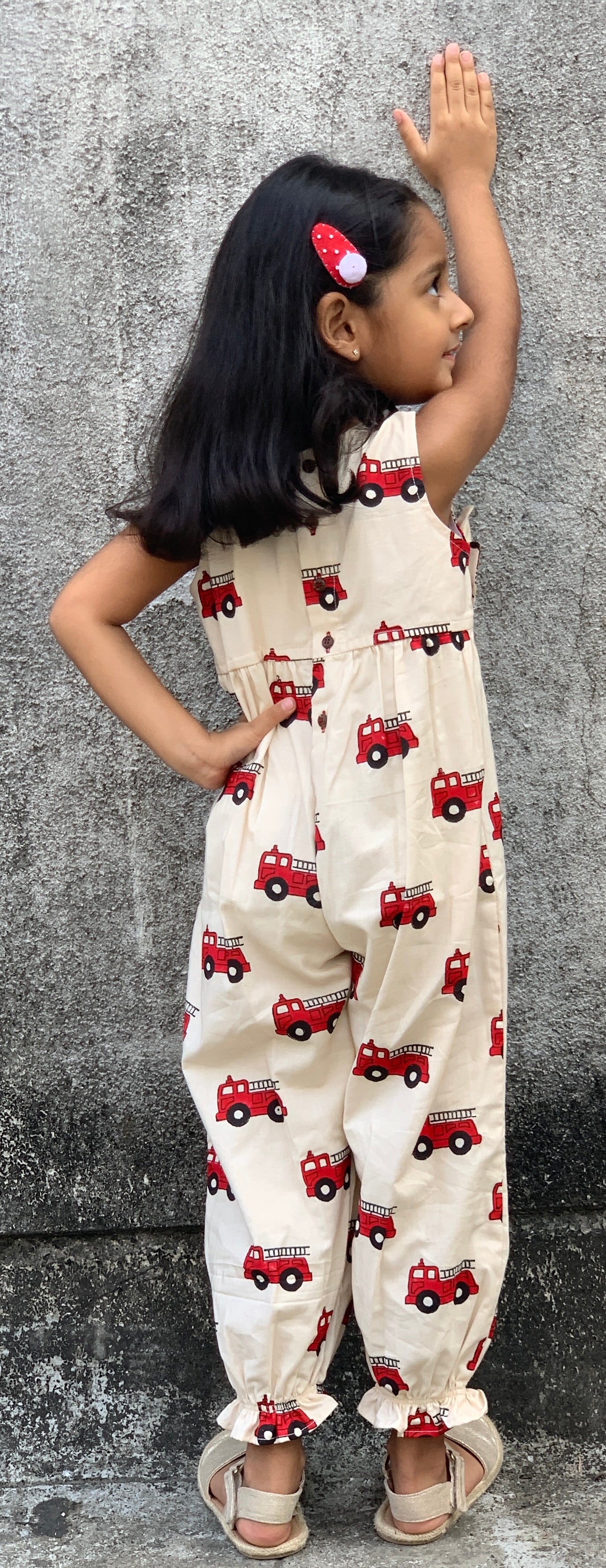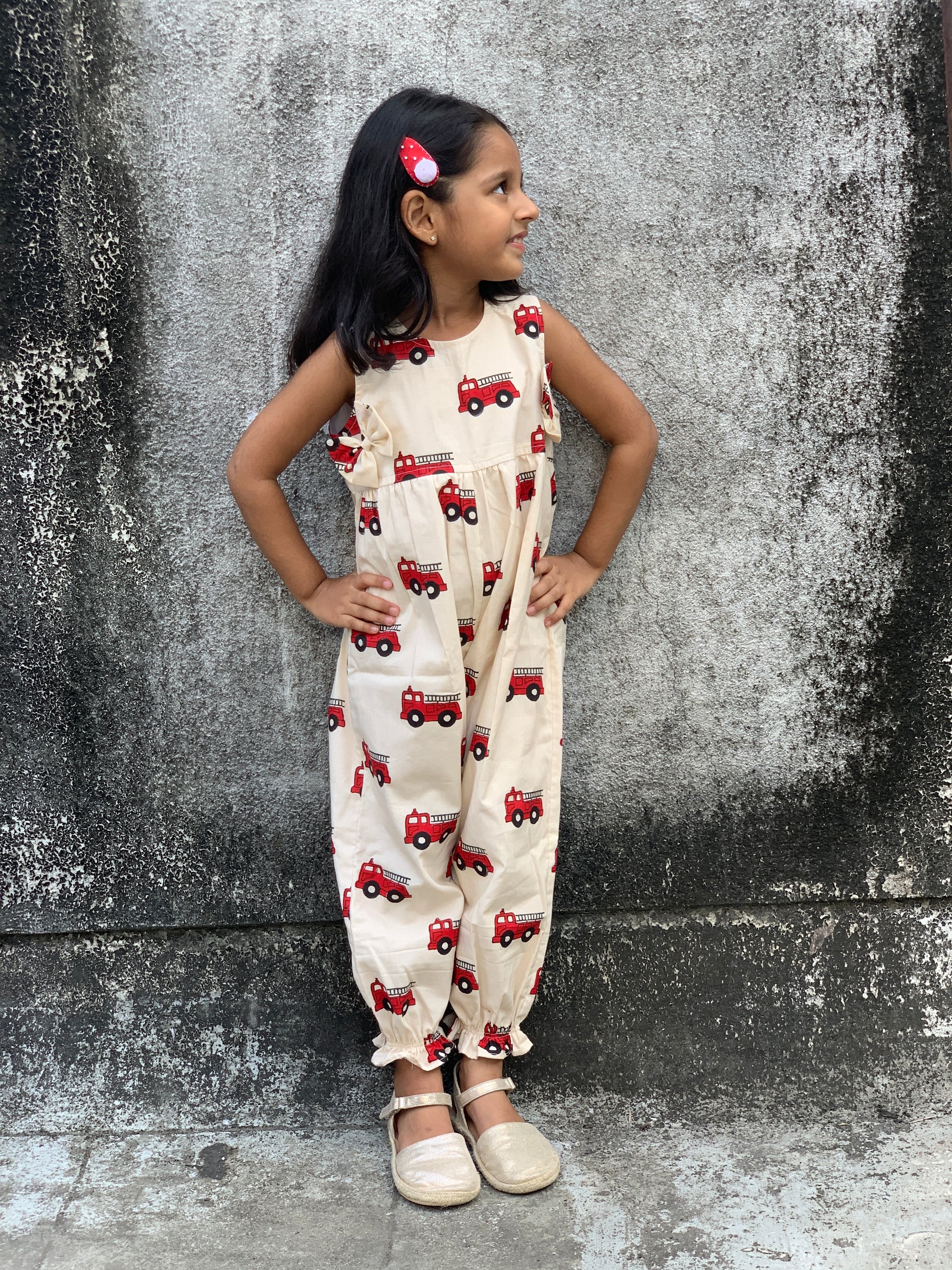 Introducing our fire-truck jumpsuit, made with 100% cotton, this super quirky jumpsuit combines comfort with style!