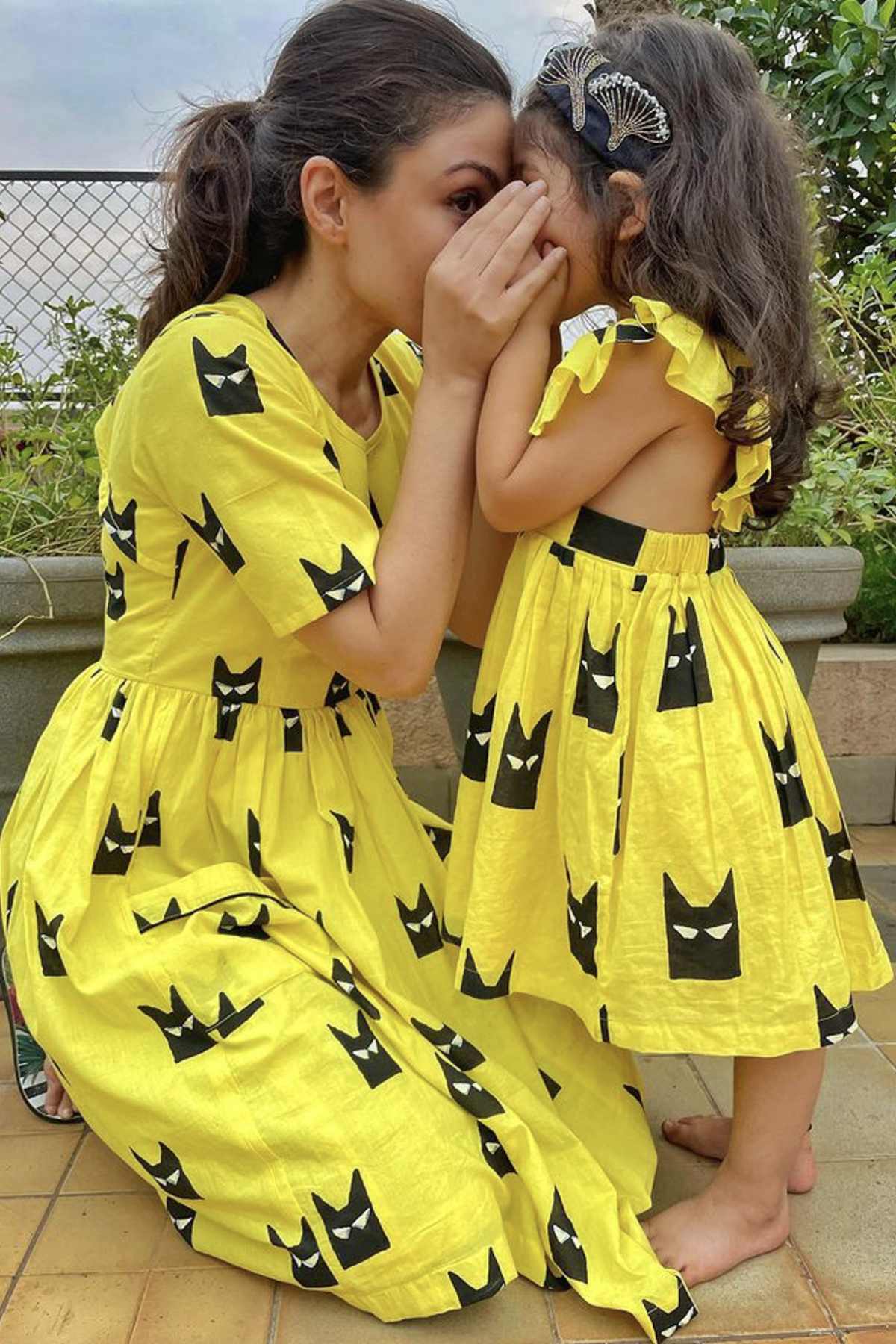 Adult Dress: Stand out with our quirky Batman Origami Print Dress! Crafted from 100% premium cotton and hand block printed, this dress features our most loved style, "The chic peep hole back" that adds a touch of elegance to this playful design. Perfect for casual outings or to Twin with your little OR family for that special occasion!