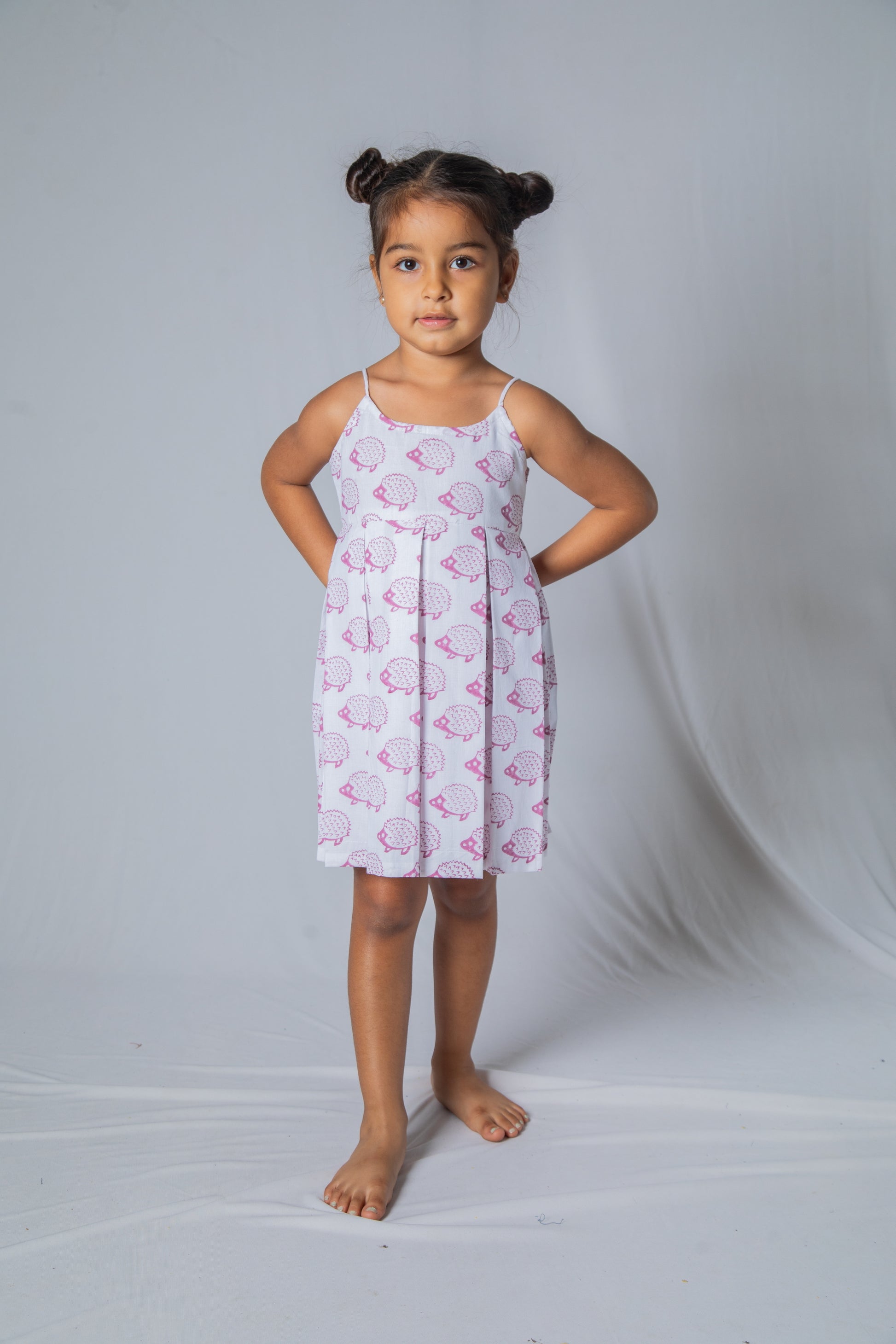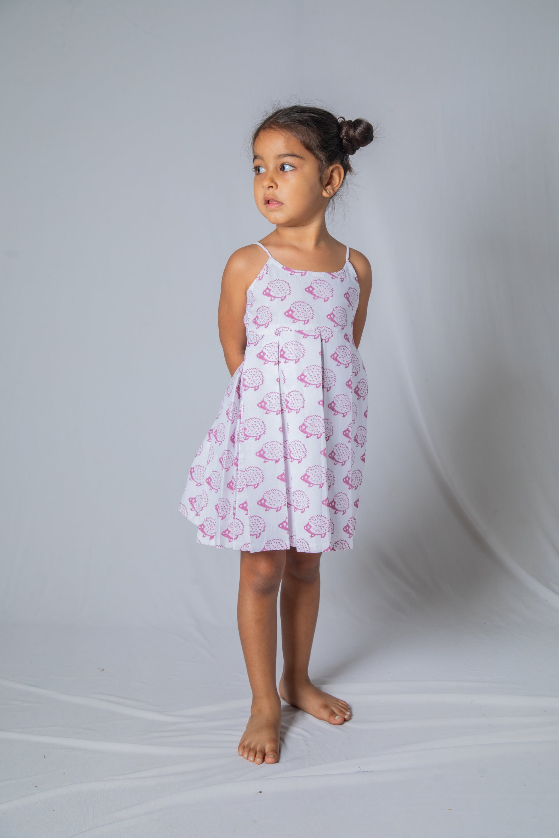 Our most loved, chic thick box pleat dress featuring adorable hedgehog hand-block prints is perfect for little trendsetters who love to stand out. Crafted with care and love.