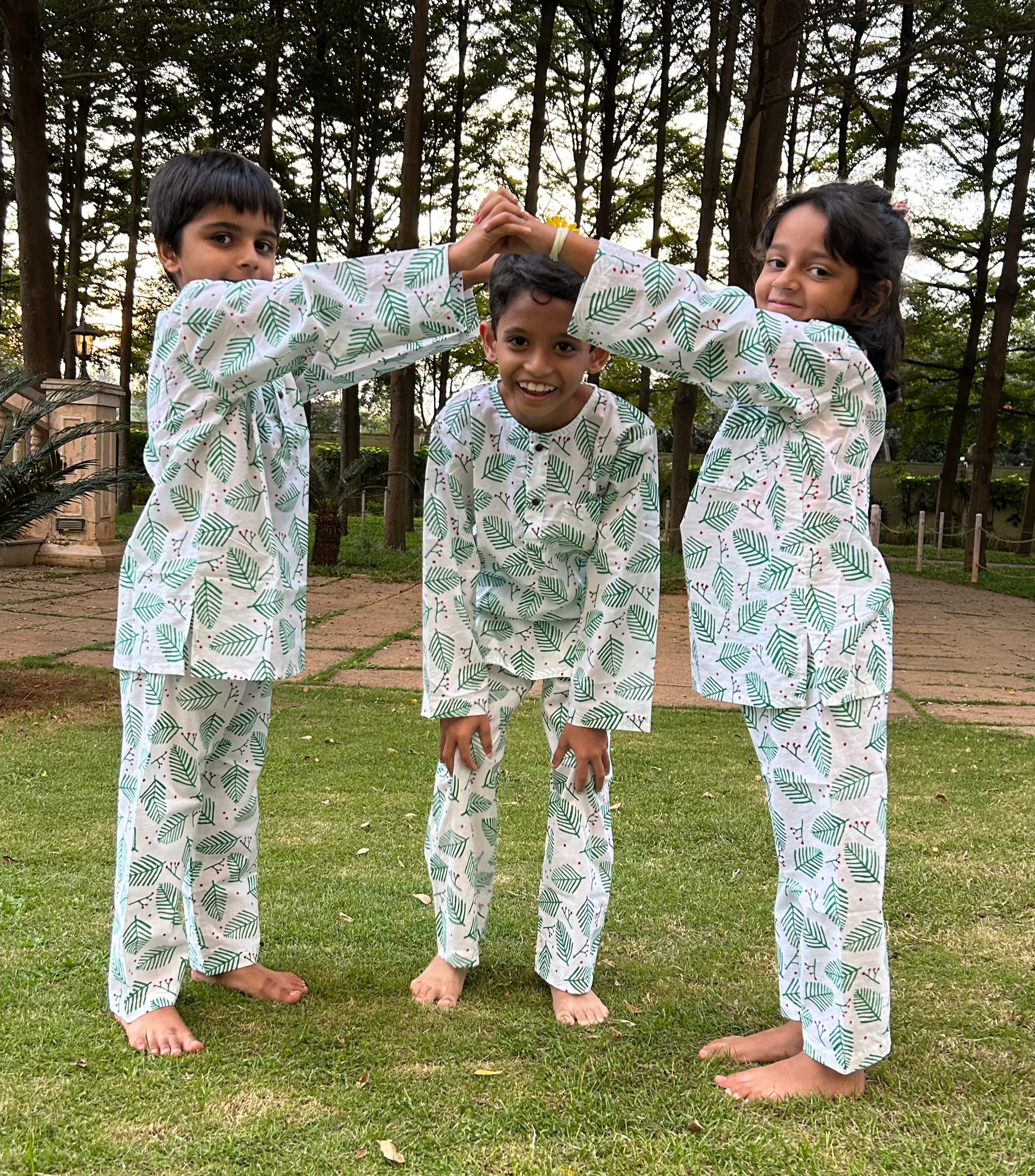 Sleep tight in our soft cotton mul night suit with our Holly Leaf print Kurta and Pajama set which is hand-block printed.