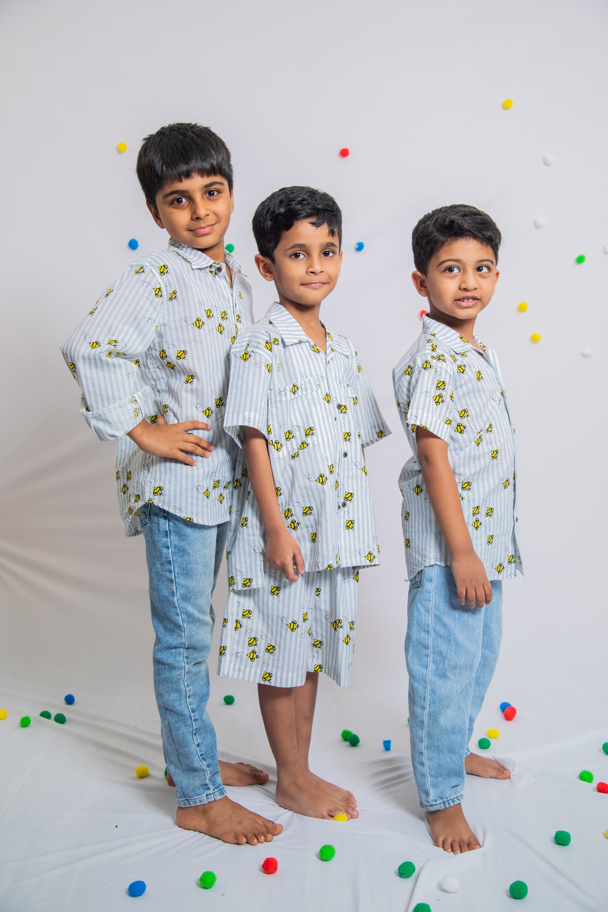 Introducing our Honeybee with grey stripes co-ord set: Crafted from 100% cotton, this set features charming zebra print. Perfectly co-ordinated for effortless style, a must have ensemble for every child.