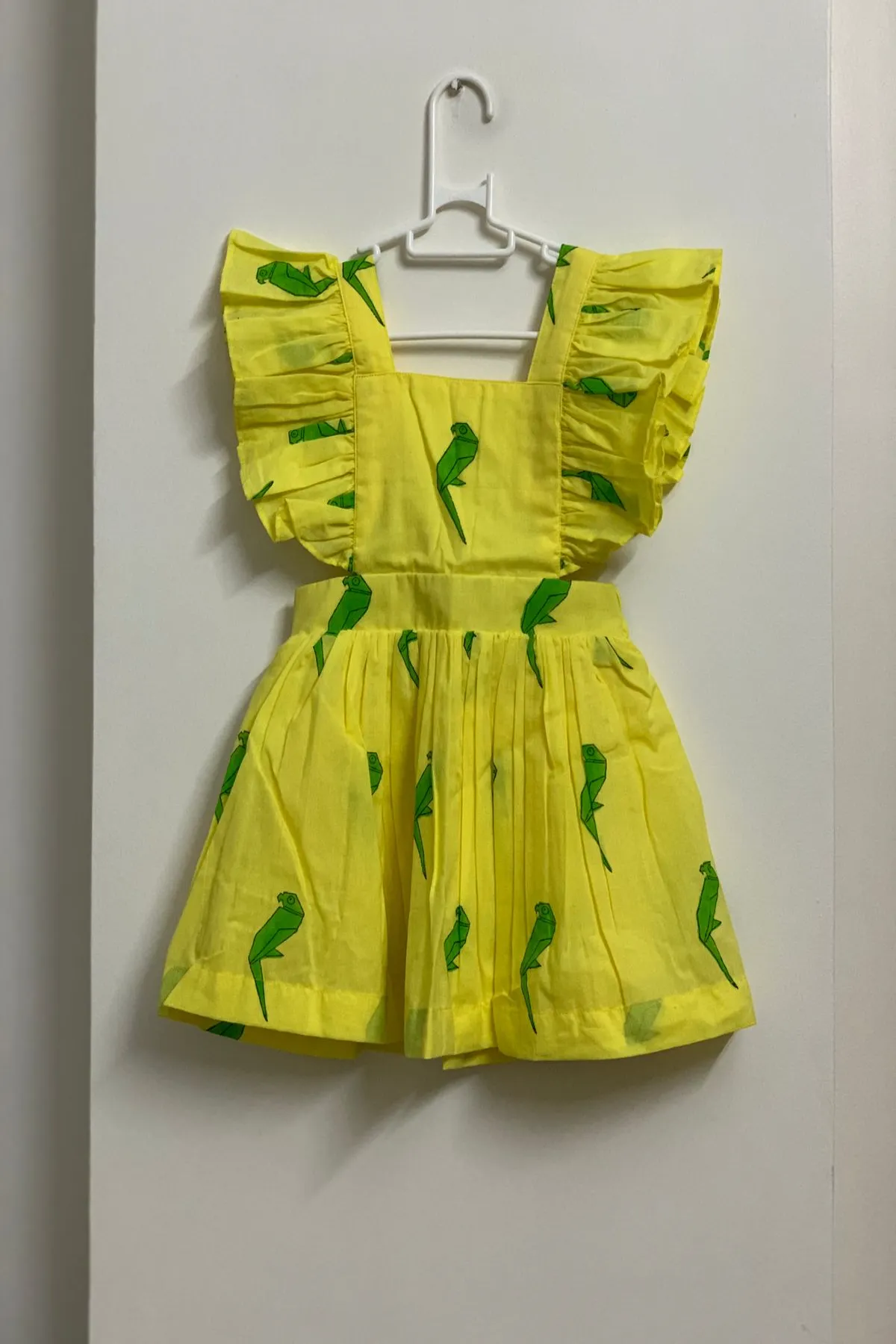 Flutter around in our Parrot print Ruffle Dress which is full of charm. It has a super cute frill detailing around the sleeves going upto the back of the dress.