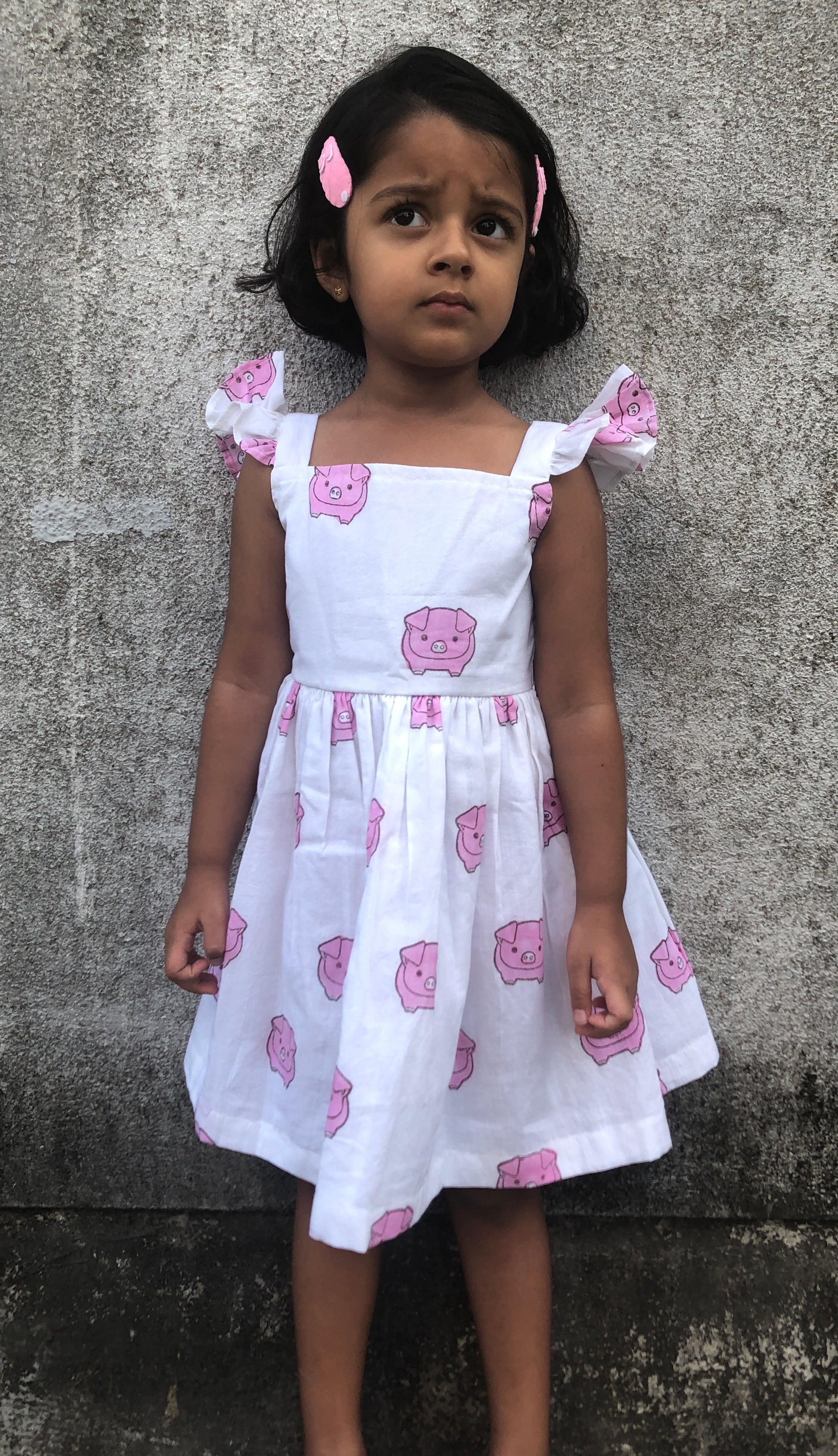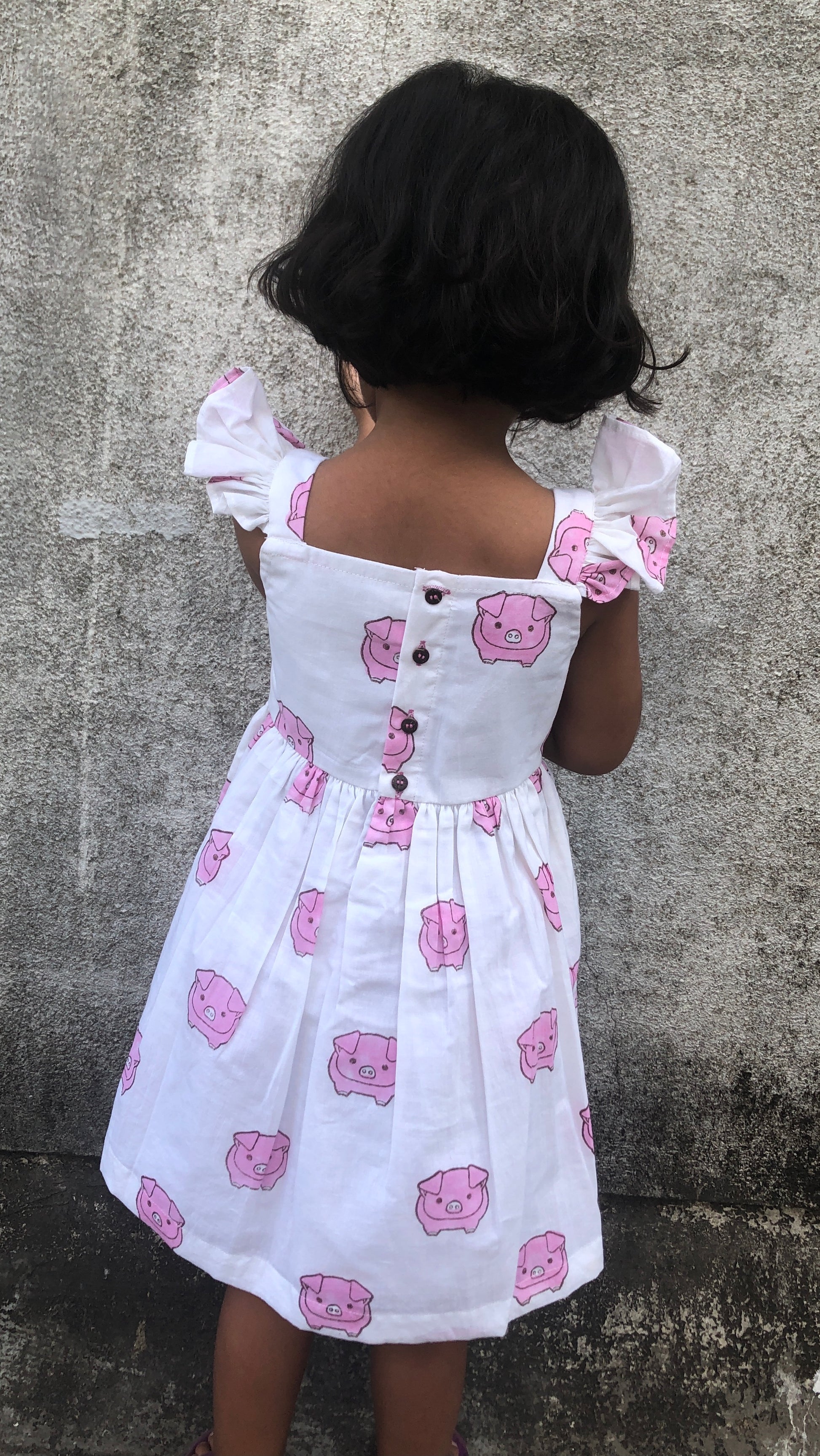 Introducing our adorable Pink Pigs print dress, designed to make your little ones twirl with joy! Crafted from 100% mul cotton, this three tiered dress features a cute and flared style, perfect for playful days.