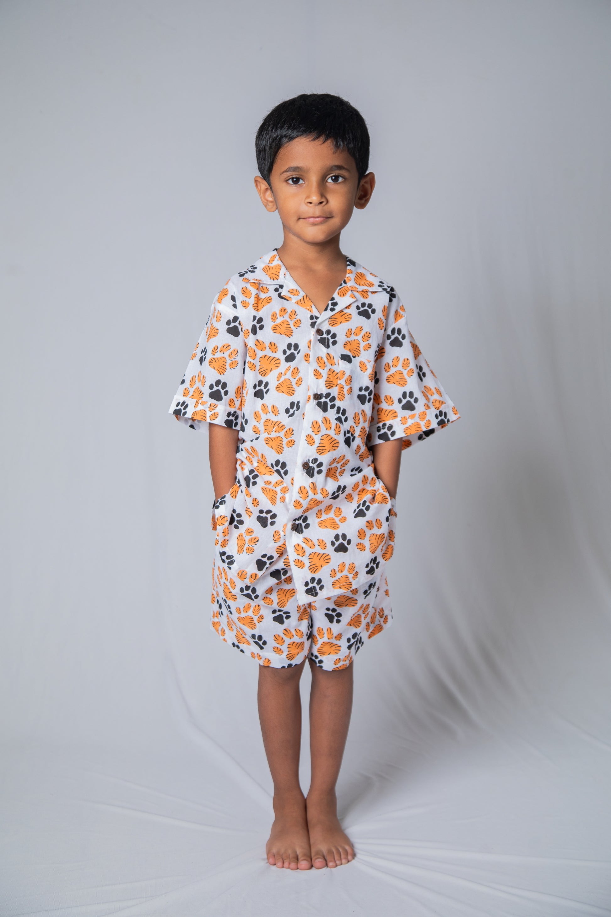 Introducing our co-ord set, crafted from 100% cotton, this set features charming tiger paw prints. Perfectly co-ordinated for effortless style, a must have ensemble for every child.
