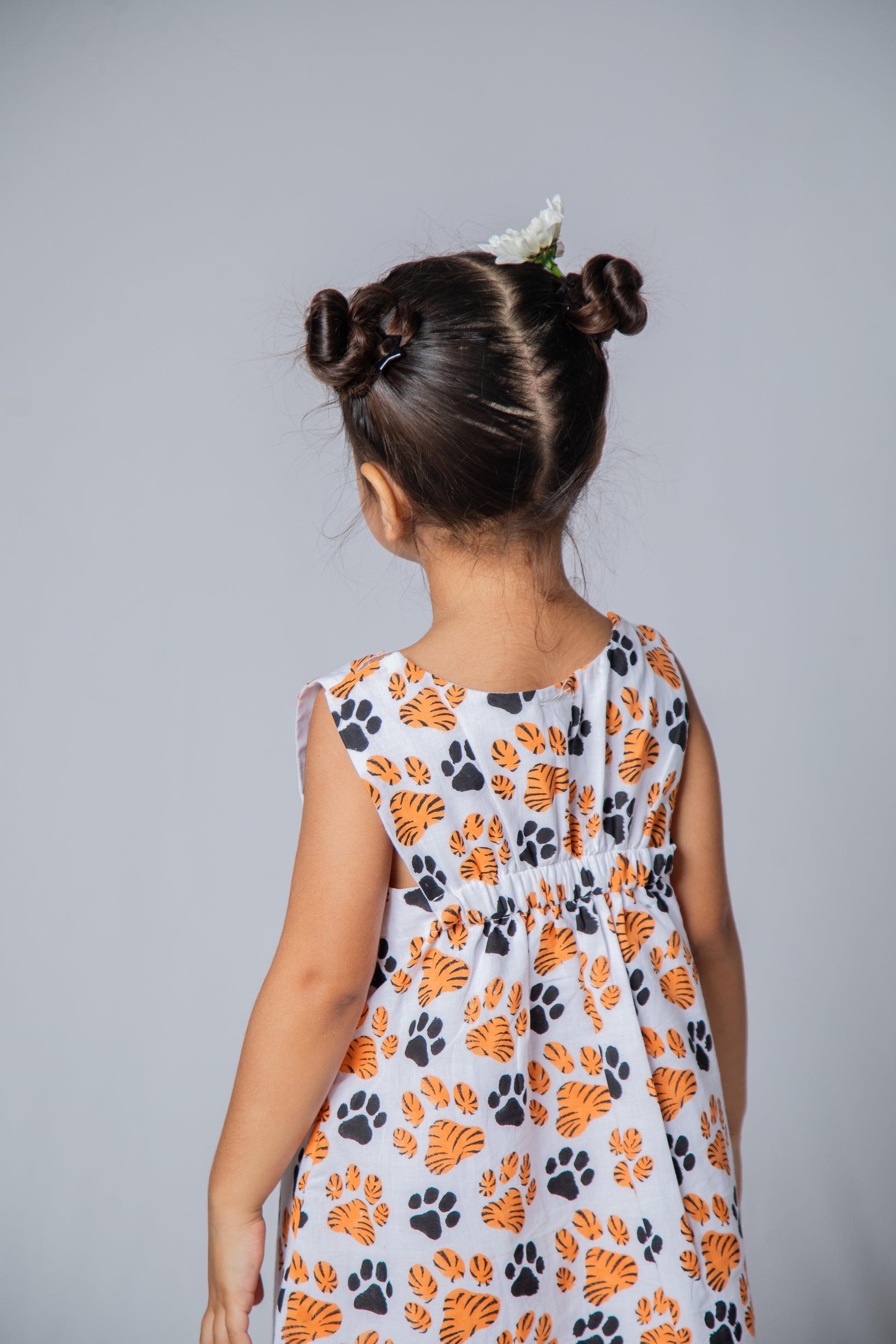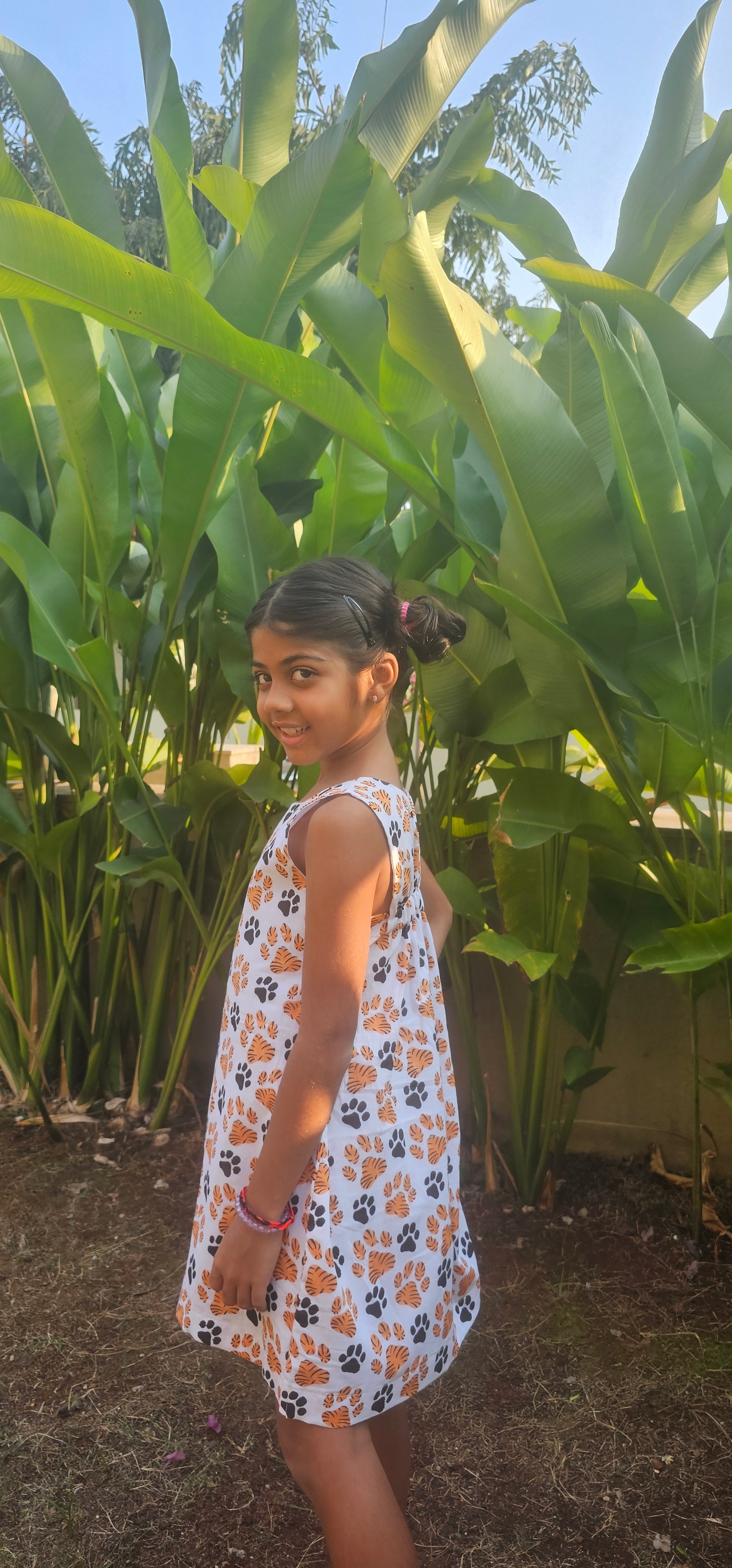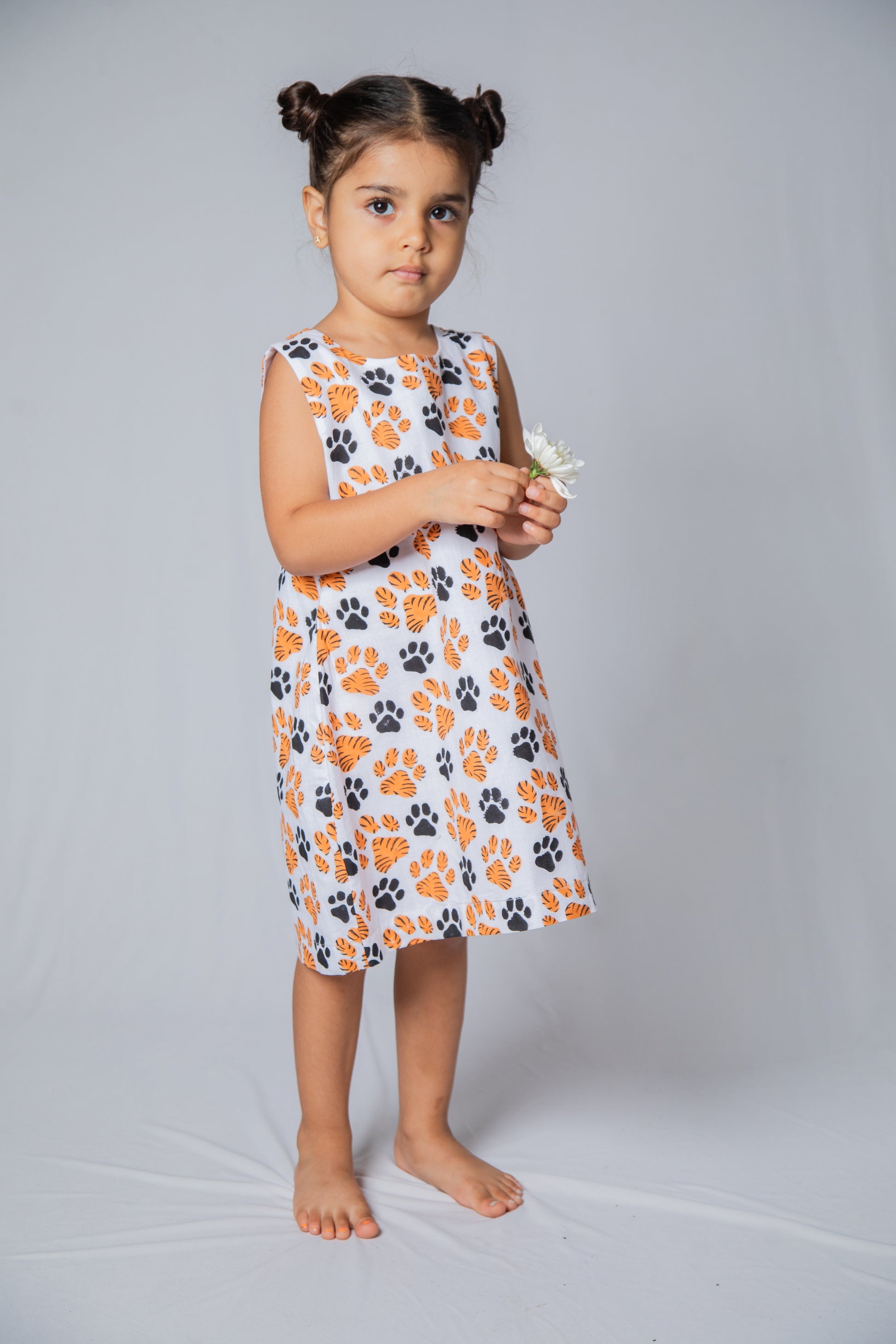 Our chic racer back elastic dress featuring adorable Pugmark prints is perfect for little trendsetters who love to stand out. Crafted with care and love.
