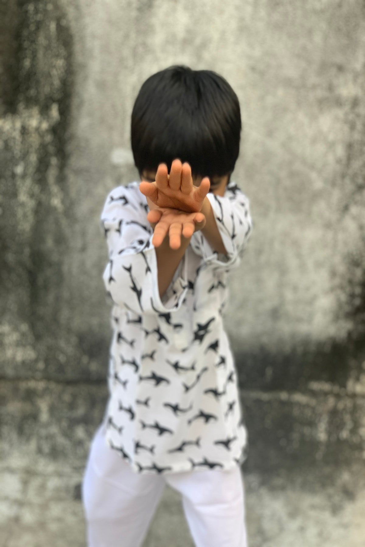 Sleep tight in our soft cotton mul night suit with our Shark print kurta and pajama set, hand-block printed.