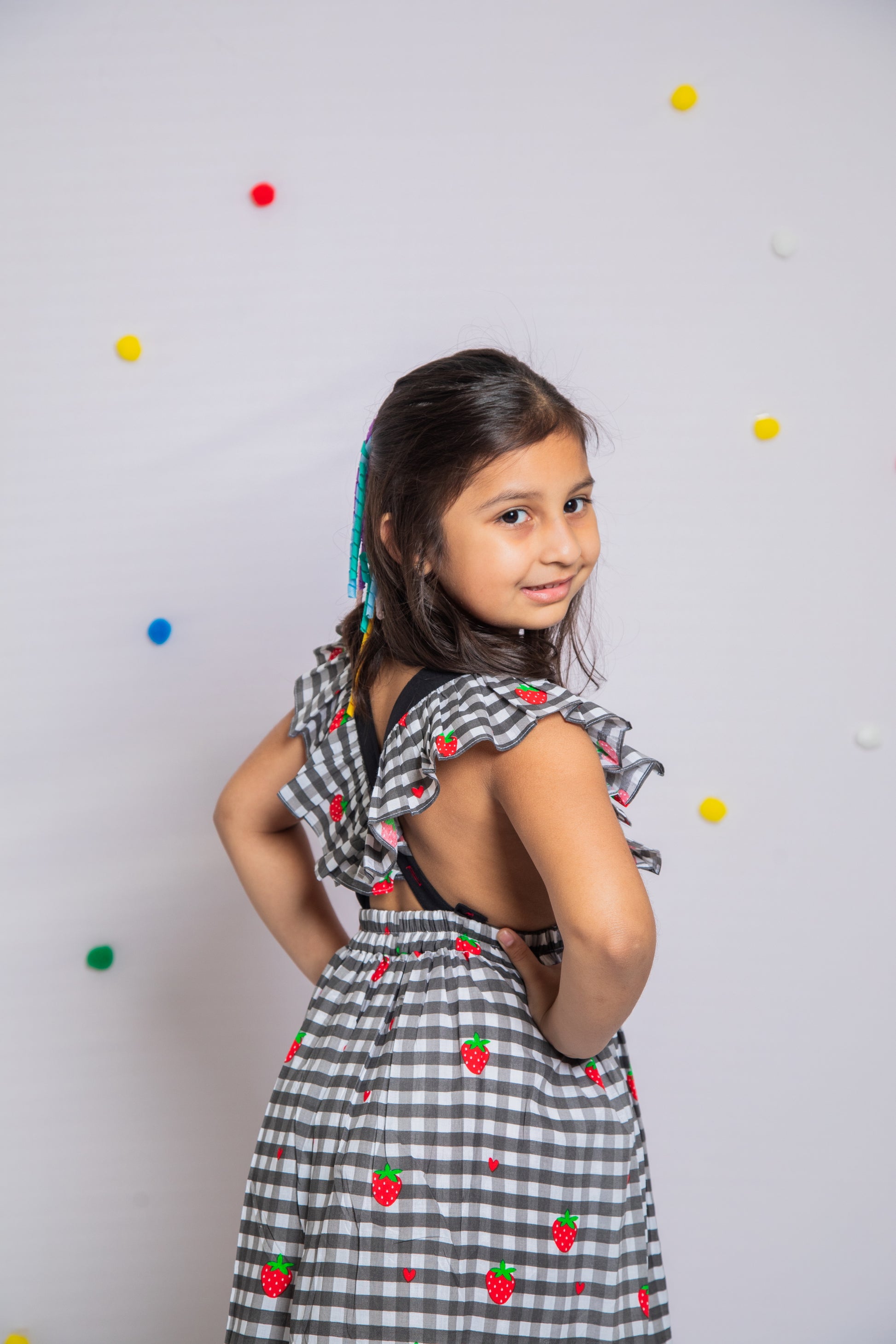 Flutter around in our signature Strawberry & Hearts print ruffle dress which is full of charm.