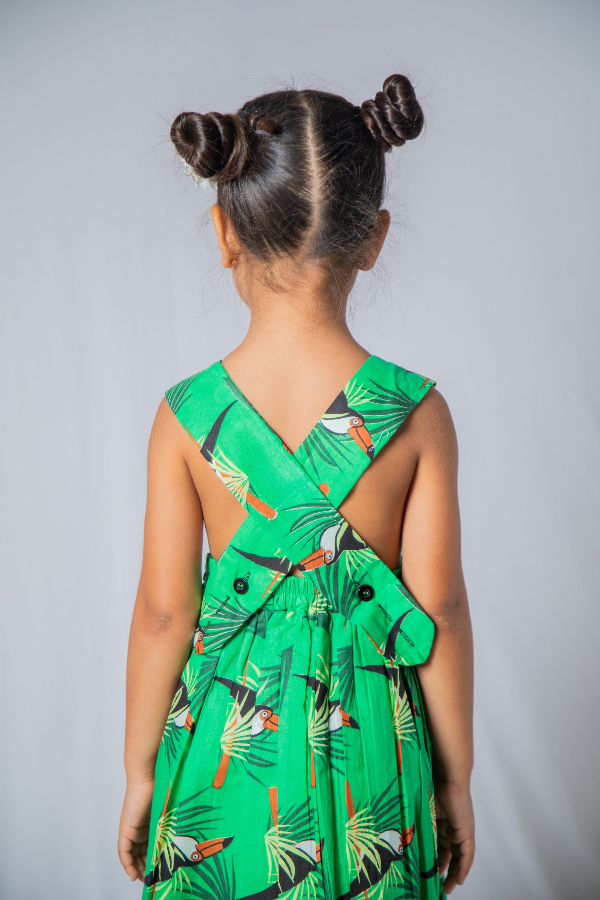 Crafted from sustainable cotton and featuring a playful hand-block print design, this trendy cross-back styled dress is definitely one of favourite styles.