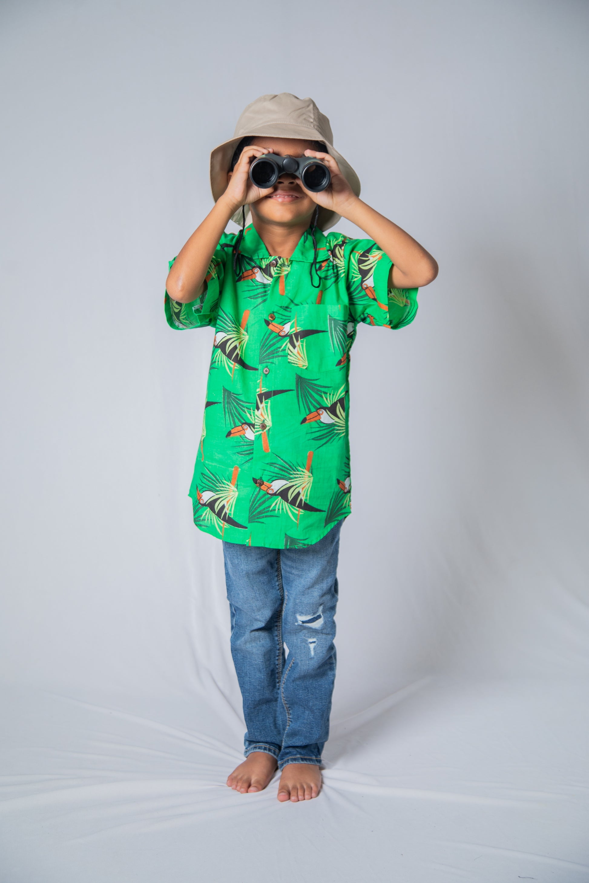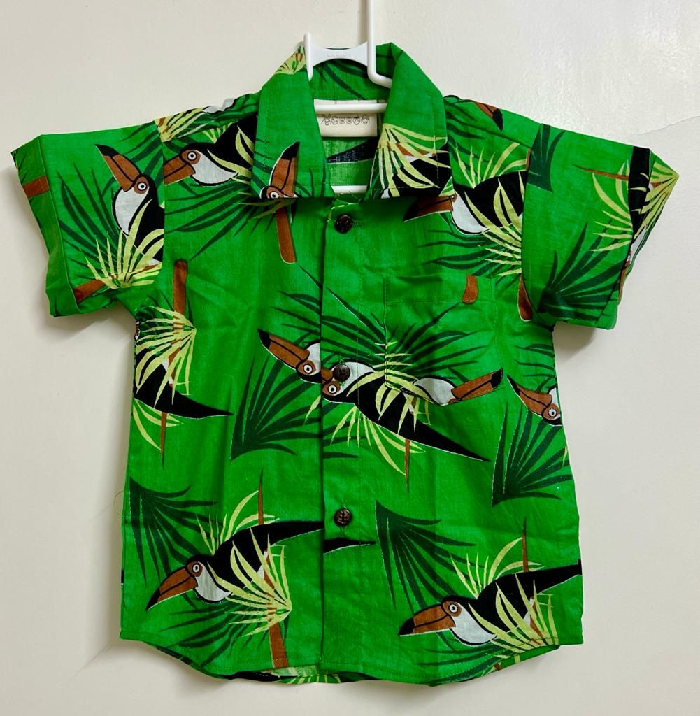 Our versatile boys' cotton shirt, crafted from 100% cotton for all-day comfort. With it's half sleeves, it's perfect for casual outings or parties, ensuring your little one stays stylish and comfortable throughout the day. Let your child's imagination soar with this exciting and fun Toucan screen print from our Safari collection!