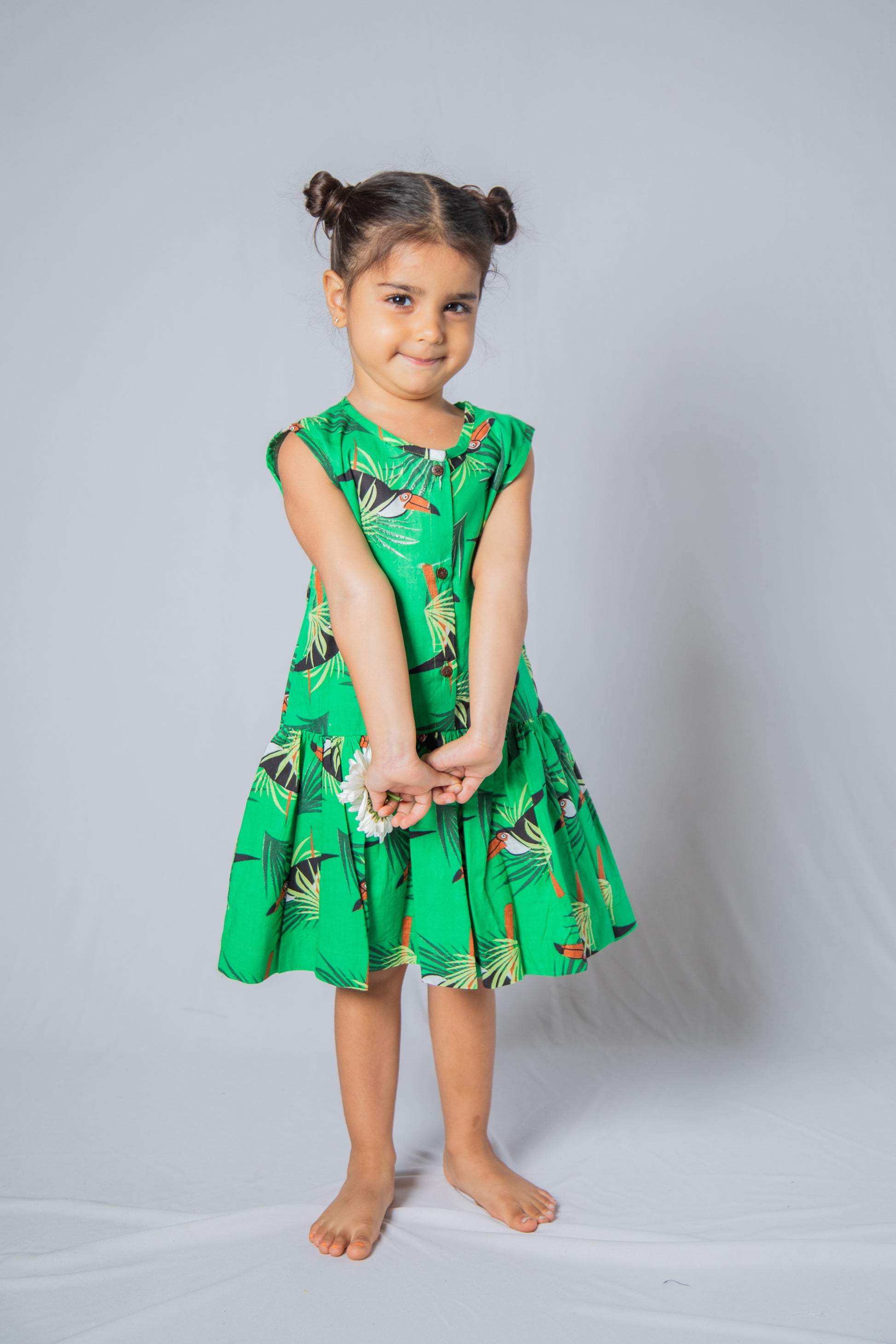 Crafted from sustainable cotton and featuring a vibrant screen print design, this trendy peplum styled dress is definitely one of favorite styles.