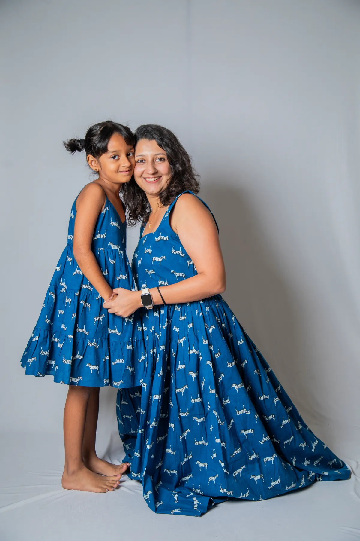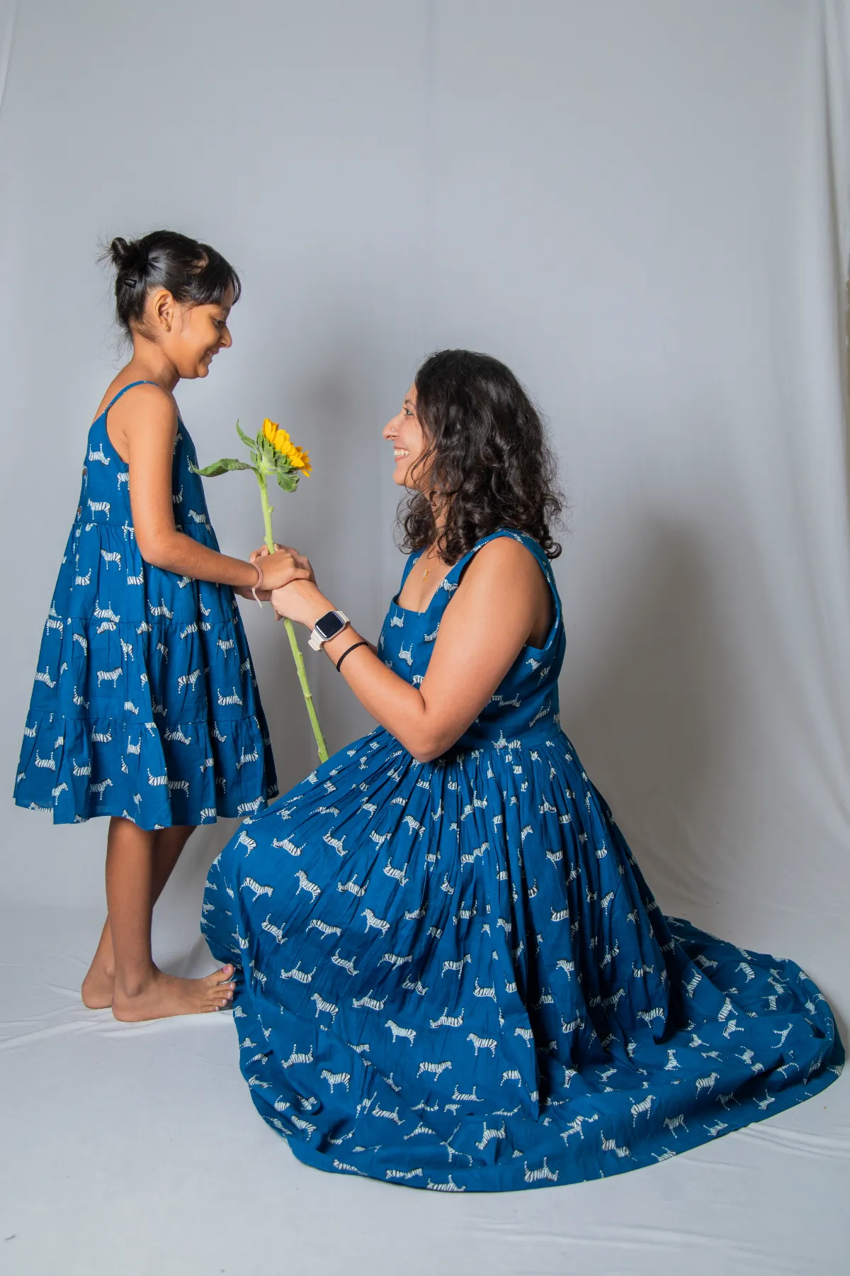 Introducing our stunning Zebra print dress, crafted for both mummies and babies to twin in style. Made with 100% cotton, this dress features a flattering joint at the waist for a perfect it and a convenient back zip. Enjoy the elegance ad comfort of this flowy design, perfect for any occasion.
