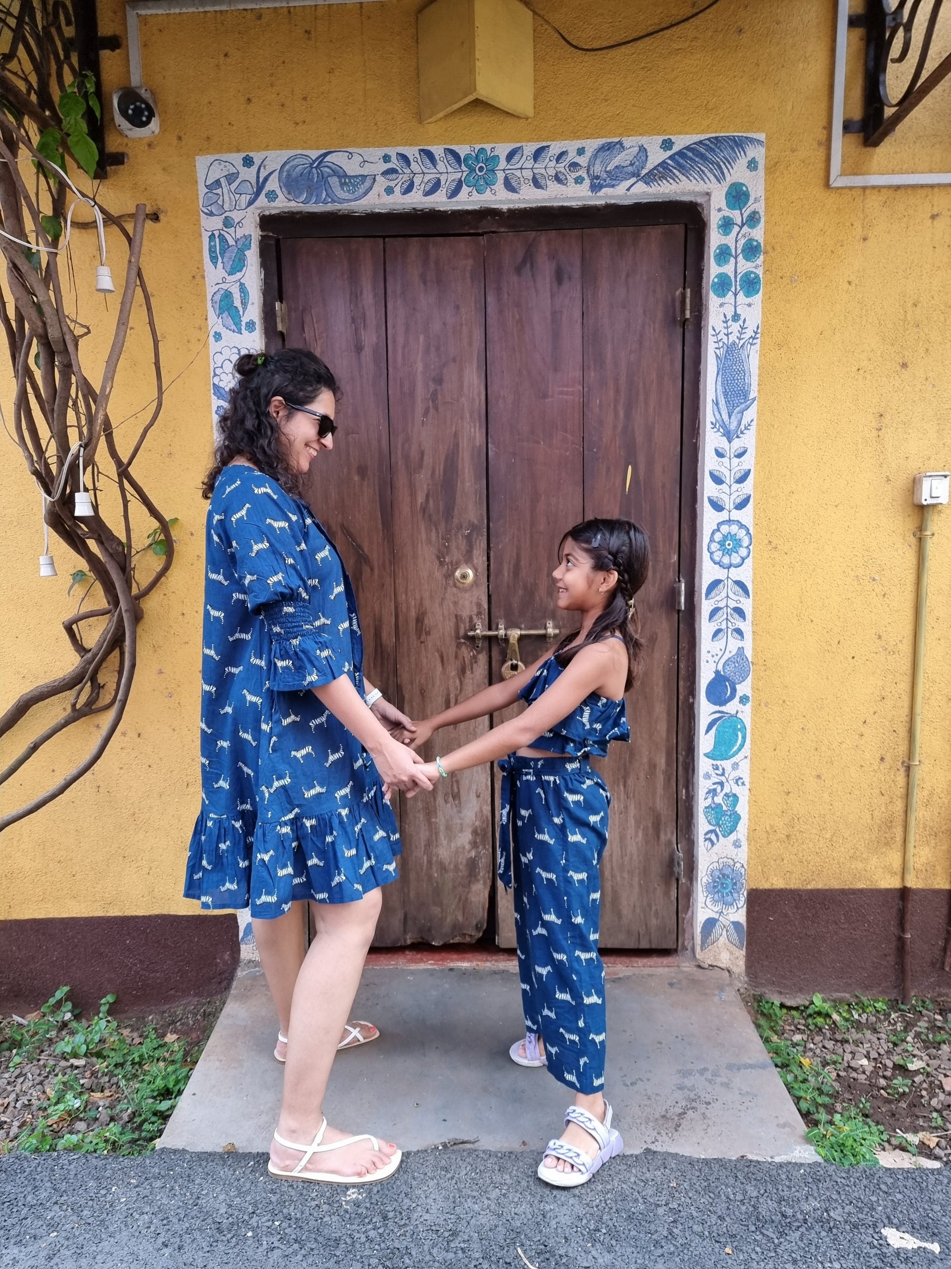 Our Zebra adult dress, an easy breezy style, with a V-neck tip-up strings, is great for your everyday casual wear. Super Soft Mul cotton screen printed fabric is great for the beach, vacation wear, or a just chill at home look.